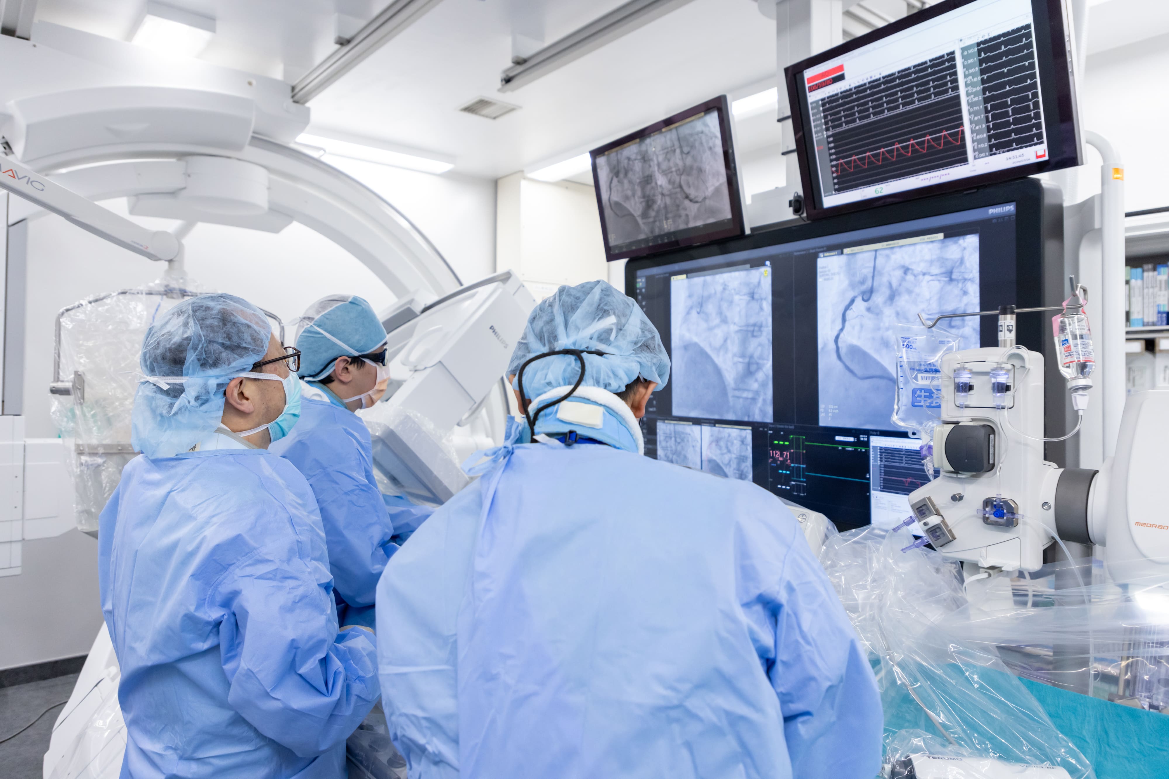 心臓血管外科とも週1回合同カンファレンスを行い、手術を必要とする患者さんや手術後の患者さんについての検討を行っております。最新の診断・治療法にも積極的に取り組み、少しでも治療成績の向上を計れるように努めており、また優れた医療品や医療機器が日本でいち早く承認されるように努めております。