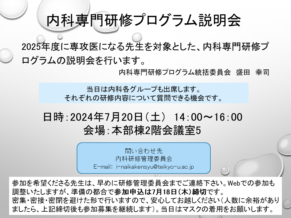 2025年度末までに初期臨床研修を修了する医師を対象に、内科専門研修プログラムの説明会を開催いたします。