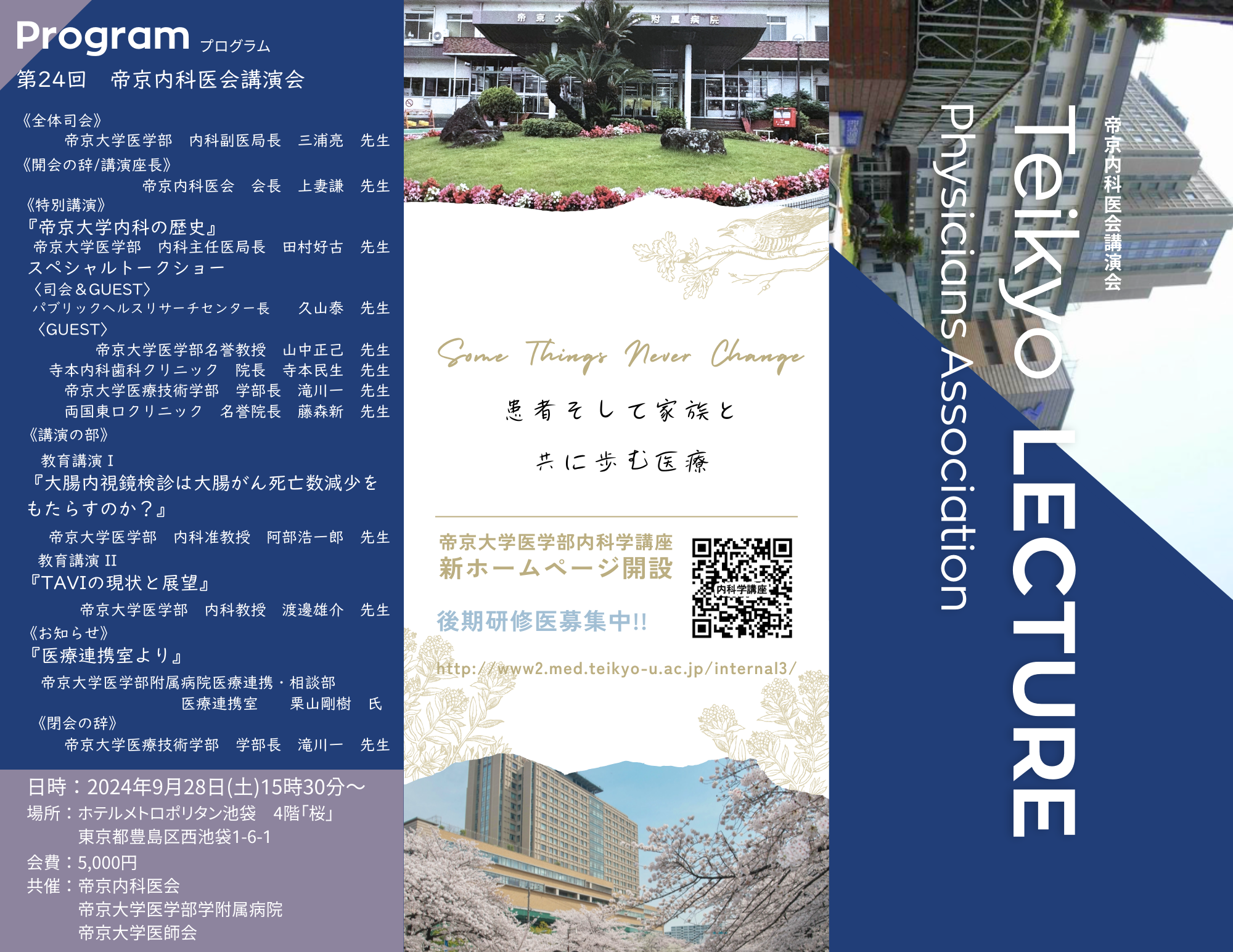 2024年5月1日に帝京大学医学部内科学講座のホームページをリニューアルしました。