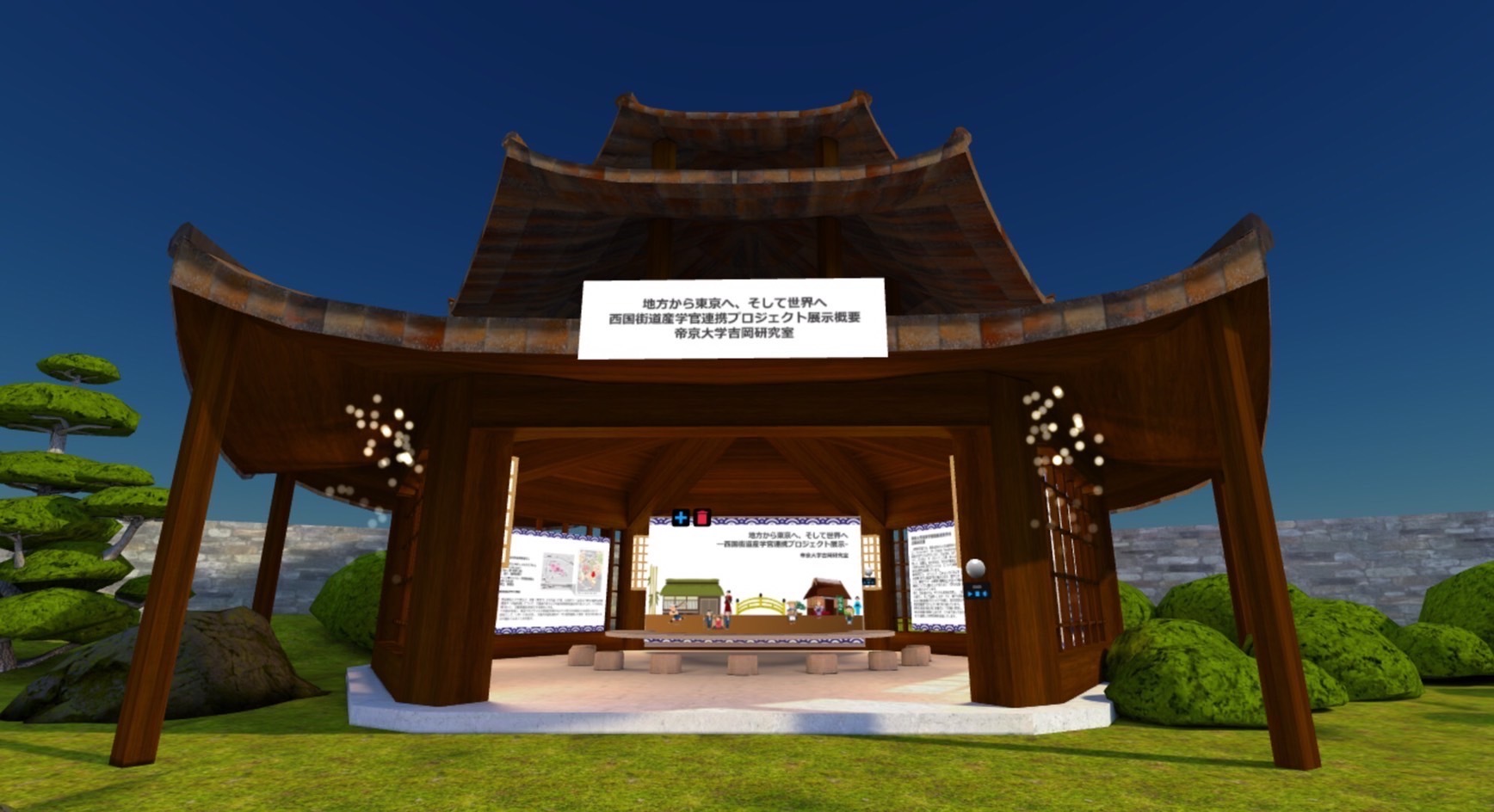 第一は、「せとうち西国街道」の過去、現在、未来の切り口です。第二は、リアル展示(総合博物館)とバーチャル展示(バーチャル・ミュージアム:メタバース、3D、VR、AR、Web等<バーチャル会場総監督:(株)SYSTEM JOURNEY>)の融合を目指しました。第三は、産学官連携により、幅広い「知」の集積を目指しました。第四は、デジタル技術を通じ、海外の大学(フランスのトゥーロン大学、フランス国立工芸院等)とコラボして、日本の外からの視点や、コロナ禍で大学生活を制限される現在において、如何にして、デジタル技術を活用し、教員・学生が学び続けるかの指針となることを目指しました。第五は、日本の伝統文化の継承や、アニメ等、今の日本文化の重要性を再認識することです。せとうち西国街道地域も、日本の伝統文化を継承してきた確かな歩みの中、現在の日本の経済発展の基礎となった地域であり、躍動感ある地方の活動や、日本の素晴らしさを再発見できる研究になりました。本展で、この研究成果を一人でも多くの方に知っていただく機会となれば幸いです。