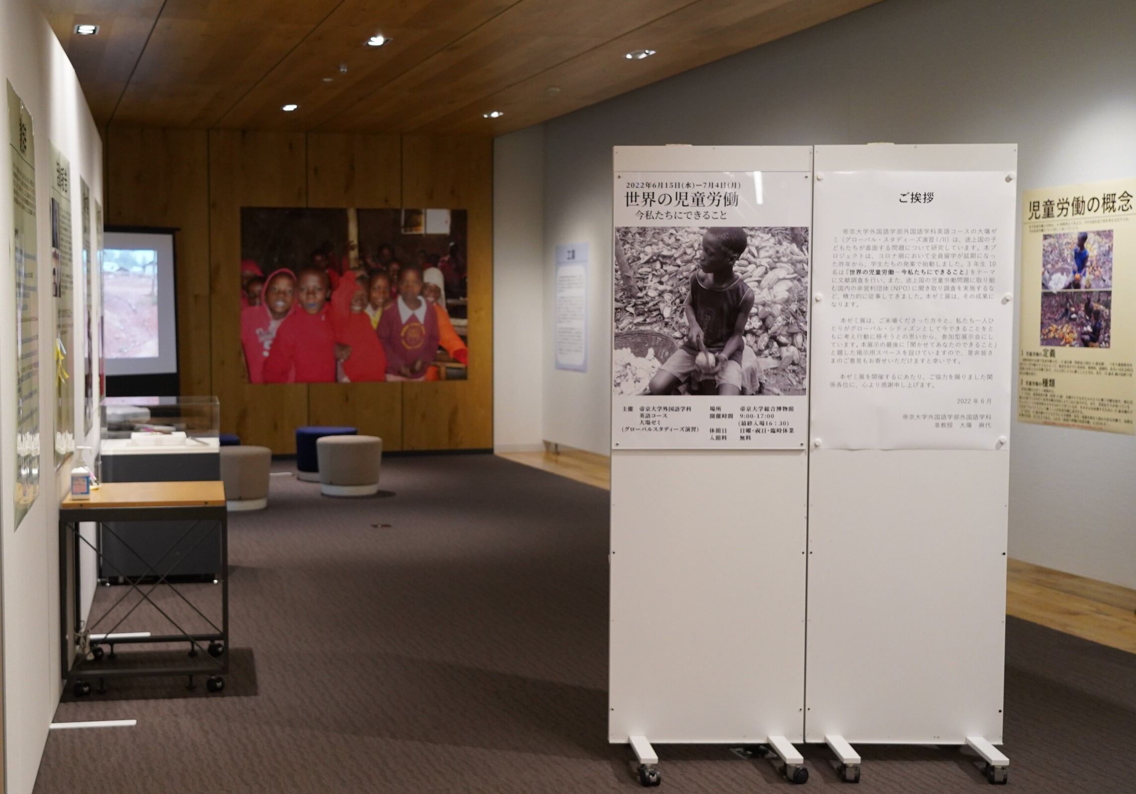 帝京大学外国語学部外国語学科英語コースの大塲ゼミ(グローバル・スタディーズ演習Ⅰ/Ⅱ)は、発展途上国の子どもたちが直面する問題について研究しています。本プロジェクトは、コロナ禍において全員留学が延期になった昨年から、学生たちの発案で始動しました。3年生10名は『世界の児童労働―今私たちにできること』をテーマに文献調査を行い、また、途上国の児童労働問題に取り組む国内の非営利団体(NPO)に聞き取り調査を実施するなど、精力的に従事してきました。本ゼミ展にてその成果を発表いたします。
