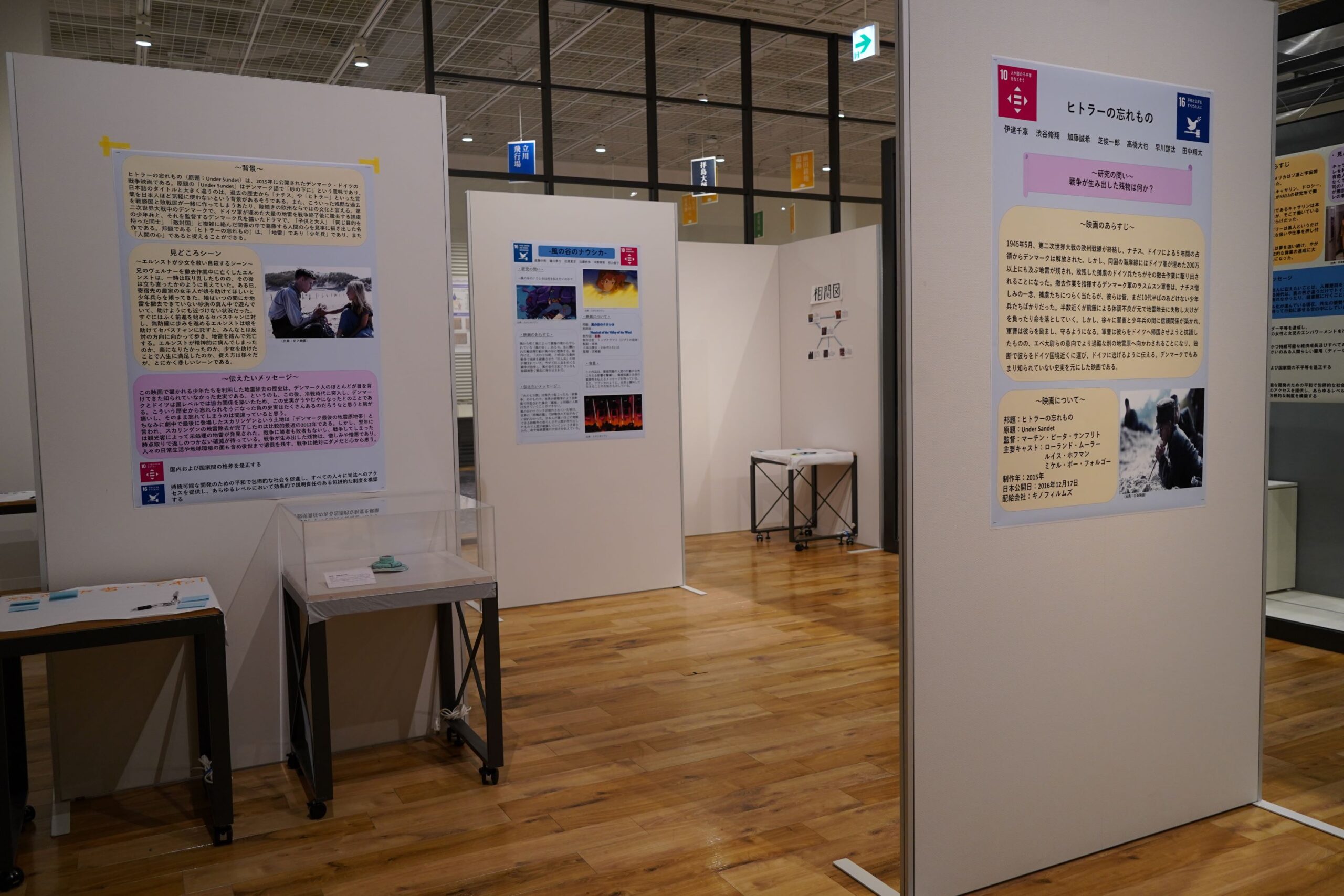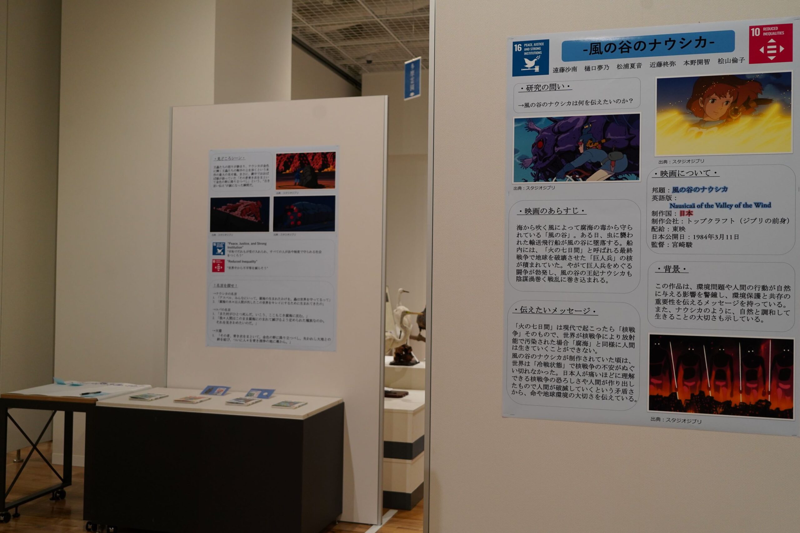 グループワークやパソコン操作がまだ得意でない学生も少なくない中、学生たちは本プロジェクトを通し、調べ学習から学び得たことと自分たちのメッセージを発信するというチャレンジに挑みました。映画とSDGsとの関連性について話し合いながら、学生たちはSDGsを理解し、本展示の映画紹介ポスターに「違いを受け入れることや個性と人格の尊重」、「多様性を当たり前に思える社会」、「戦争の愚かさと理不尽さ」、「戦争は絶対にしてはいけないという強い思い」、「自然と文明との共存」、「命と地球環境の大切さ」のメッセージを託しています。地球規模課題を解決するには、私たち1人1人が関心を持ち行動に変えていく必要があります。本展示が学生たちと来館者の皆さまをつなぎ、これらの映画と地球規模課題への関心を深める一機会になりますと幸いです。また、学生たちのさらなる学びと励みになりますゆえ、各ポスターへのコメントを頂けますと有難いです。