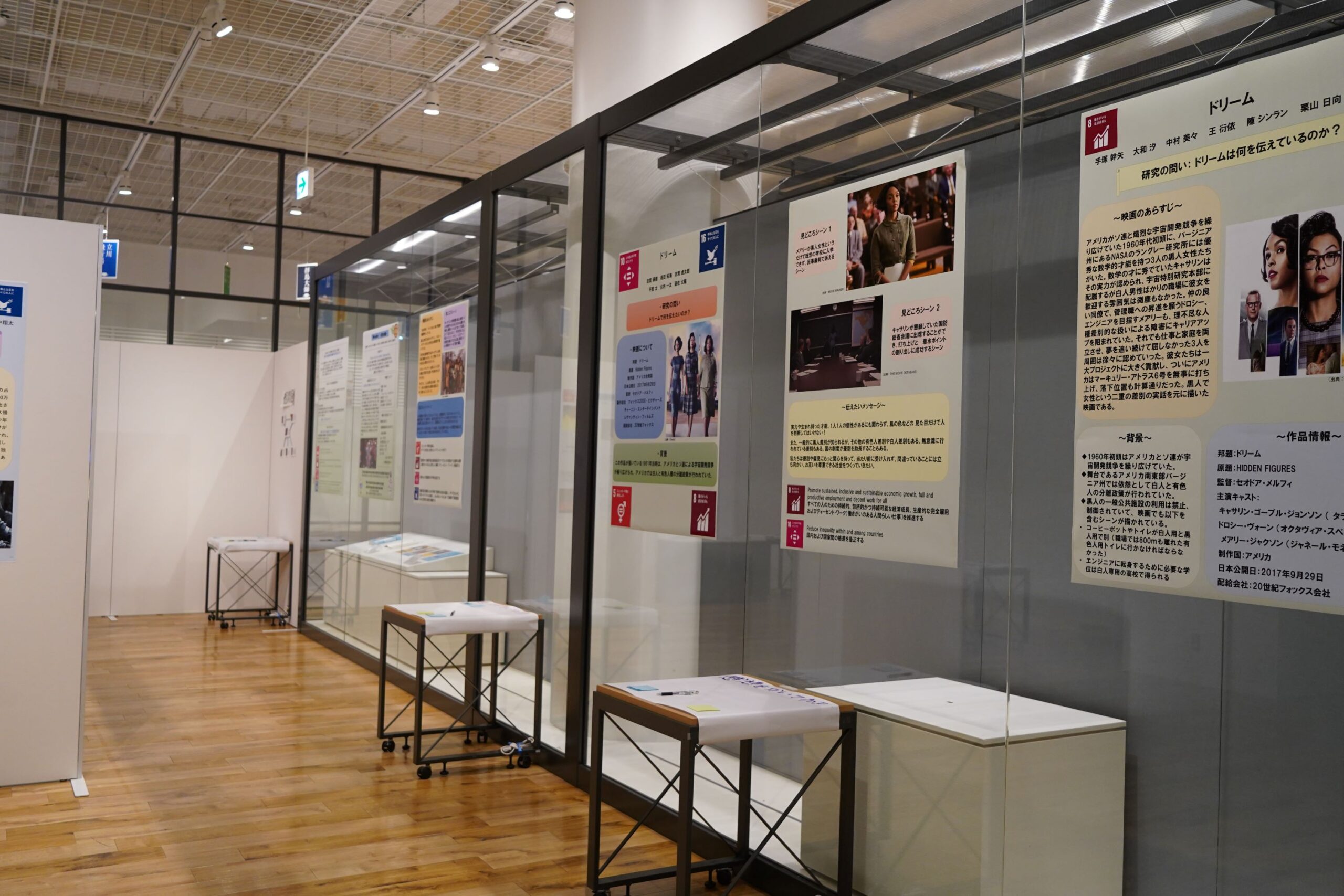 新学期に「グローバル・シチズンとして必要な幅広い教養と知識を持ち、それを他者に分かりやすく説明できる」という学科のディプロマ・ポリシーを理解し実践するプロジェクト案を話し合いました。SDGs(持続可能な開発目標)や社会情勢、社会問題、大学周辺地域との関係性といったテーマや、映画、音楽、スポーツなどツールのアイディアが挙がり、結果として学生としてできる社会へのメッセージ発信に焦点を置くこととしました。学生たちは、戦争と平和、自然災害、人種差別、障害者差別、LGBTQ、環境問題、貧困と格差などの社会課題を挙げ、これらは複合的に関係していることを指摘しながら、各々の関心に沿った課題別にグループに分かれ、取り扱う映画を決めました。前期には映画を視聴し背景を調べ、映画が伝えていること、それを受けて自分たちが伝えたいメッセージを口頭発表しました。後期には、総合博物館の学芸員の先生から展示に関する講義やアドバイスを受けながら展示資料の制作に取り組み、「映画を通して伝える地球規模課題へのメッセージ」展を開催する運びとなりました。