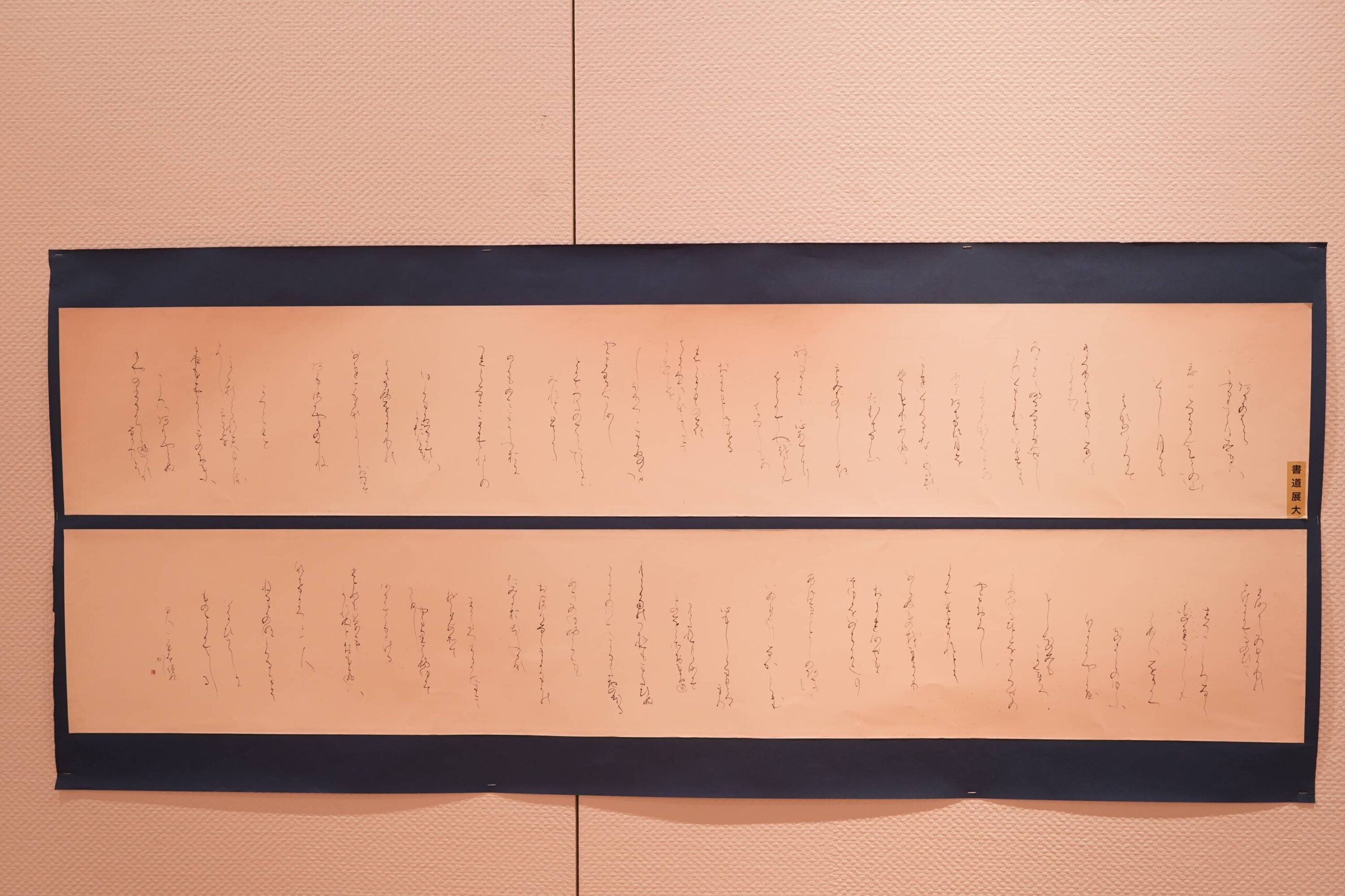 この展覧会では、帝京大学総合博物館のご協力を得て、「全日本高校・大学書道展」に出展した作品から厳選した22点を展示させていただきます。それとあわせて、青舎祭や市町村のイベントで行っている「書道パフォーマンス」の動画や作品など、書道部による社会貢献といった日頃の活動もご紹介させていただきます。