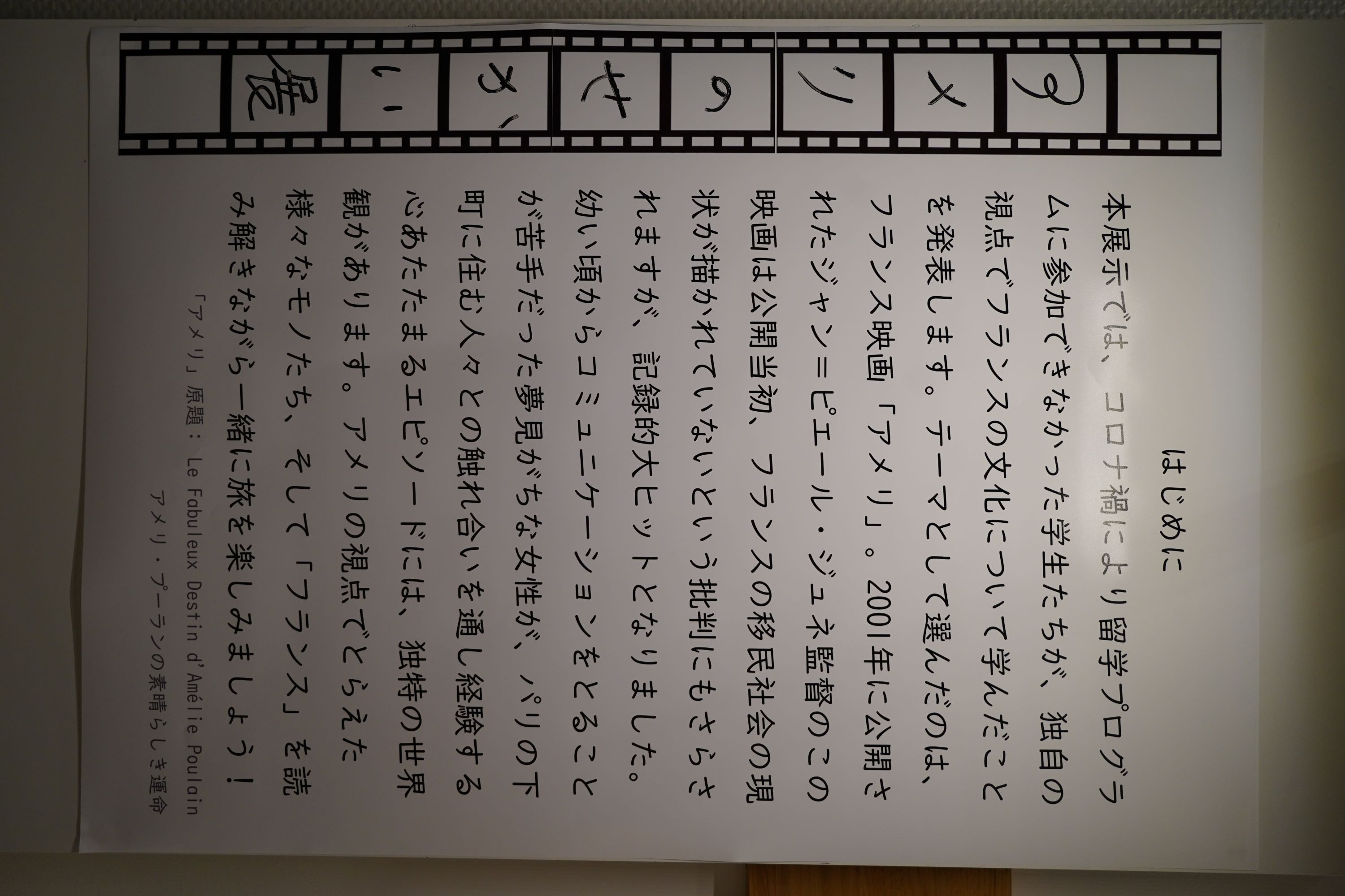 当館館内にてフランス映画「アメリ」からフランス文化を学ぶゼミ生の展示を、解説つきでご覧いただけます。