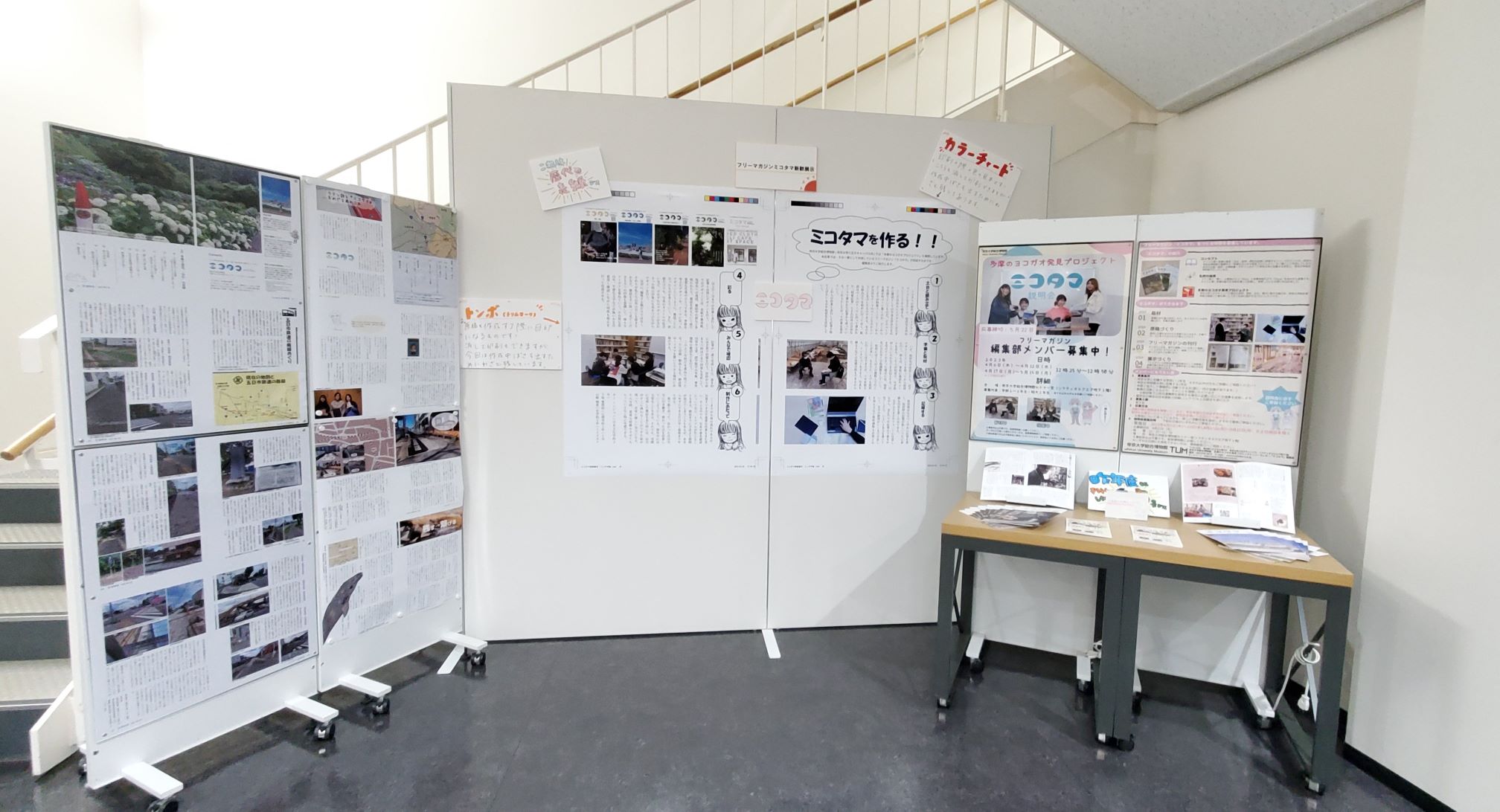本展示は、本学の新入生や来館者の皆様に、より『ミコタマ』の活動を知ってほしいという思いから企画しました。この展示が皆様が『ミコタマ』に興味を持ち、多摩地域の魅力を知るきっかけになれば幸いです。