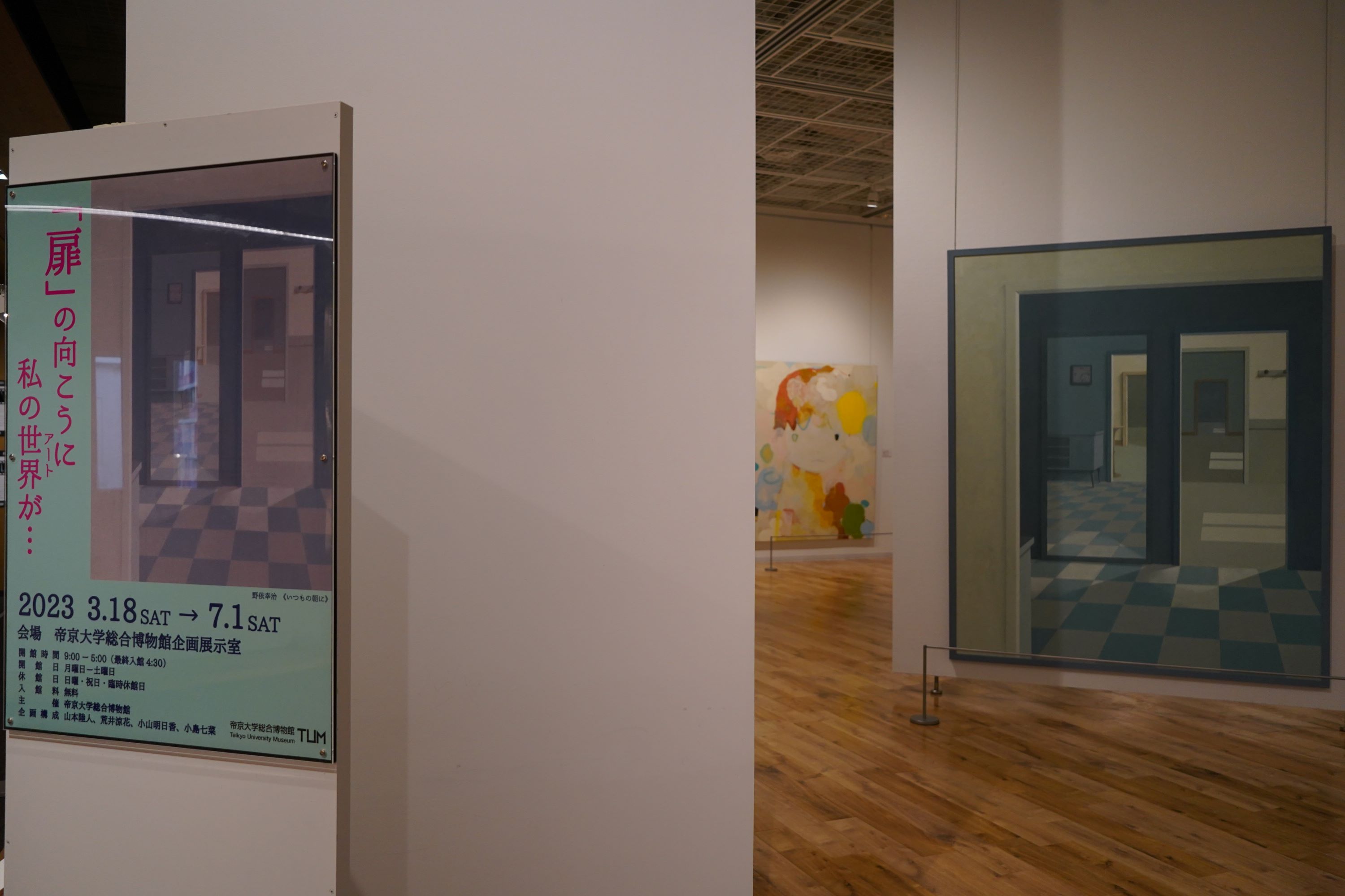 日頃は帝京大学総合博物館の欠かせない「引き立て役」として活動している4名の学生諸君が、舞台の主人公として活躍するのが今回のミニ企画展です。彼らが「主役」として活躍する世界に入るには、企画展入口に展示した本学所蔵作品≪いつもの朝に≫(野依幸治氏作)の中にある扉をくぐることから始まります。その向こうでは、全4章の多彩な世界(アート)が皆さんとの出逢いをお待ちしています。
