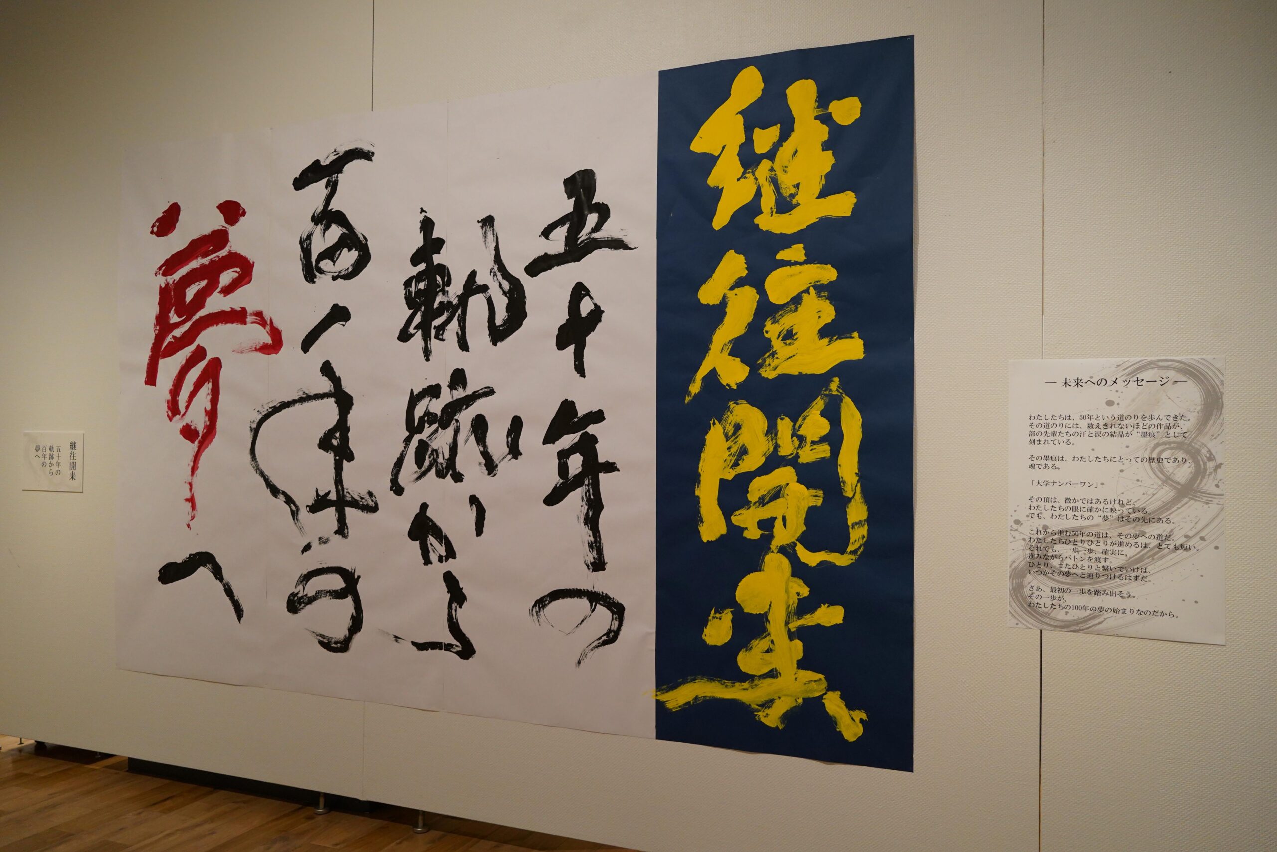 本展は、これまでの全日本・高校大学生書道展や読売書法展、日展といった公募展において、輝かしい結果を残した作品の一部を、まさに50年の歴史の中で、先達が刻みつづけた“墨痕”を展示いたします。