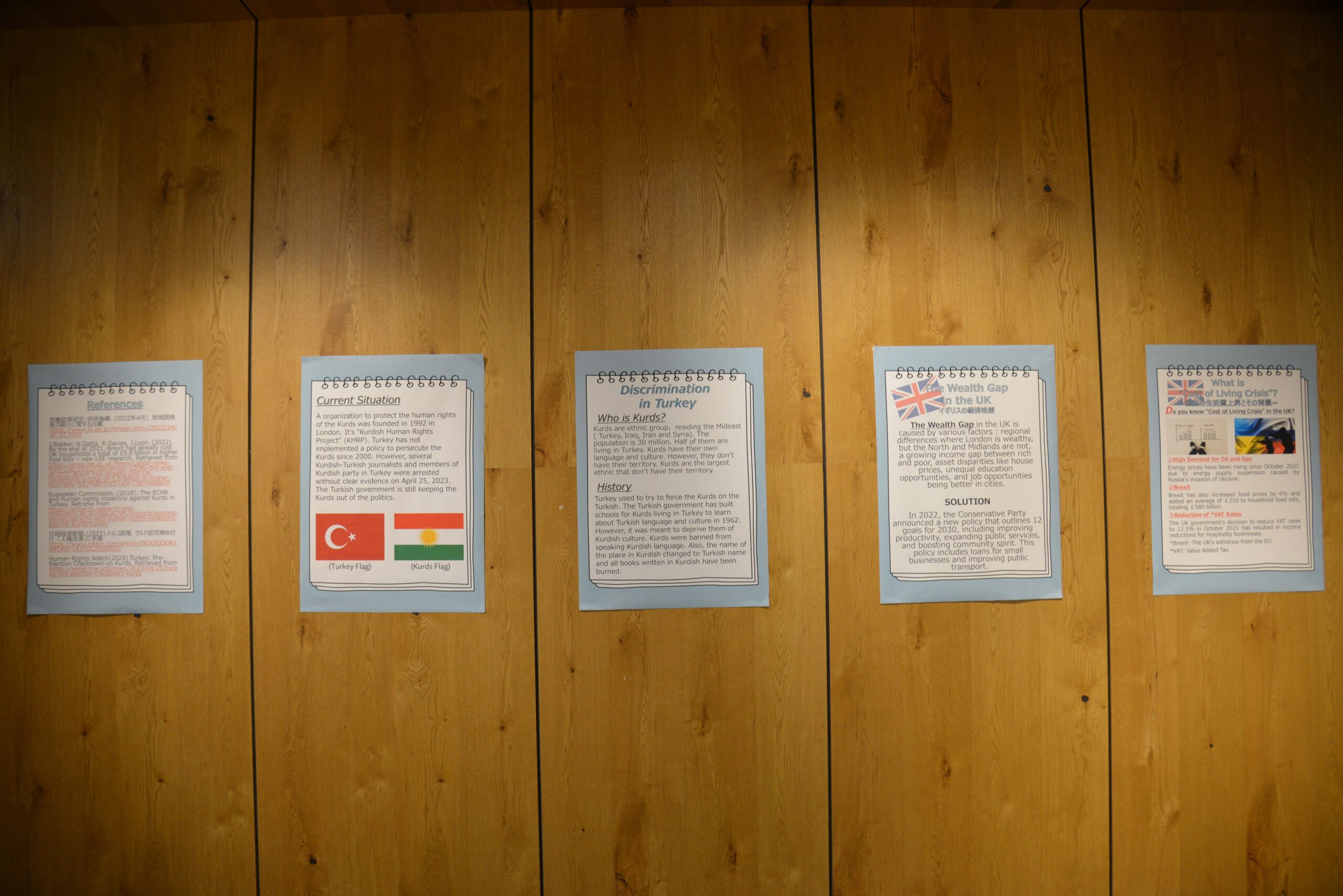 世界では至る所で差別が起こっています。その内容はLGBTQや紛争や貧困、教育格差や雇用状況の未整備など多岐にわたります。近年世界では「BLACK LIVES MATTER」や「ヘイトスピーチ」をはじめとする「#(ハッシュタグ)」を用いてSNSなどで拡散され、世界中で問題になっています。今回はアジア・ヨーロッパ・アメリカの3つの地域に分割して、多角的、批判的、国際的な視点で分析を行い展示します。本展示を通して皆さんの「世界の差別」について考えるきっかけになれと幸いです。