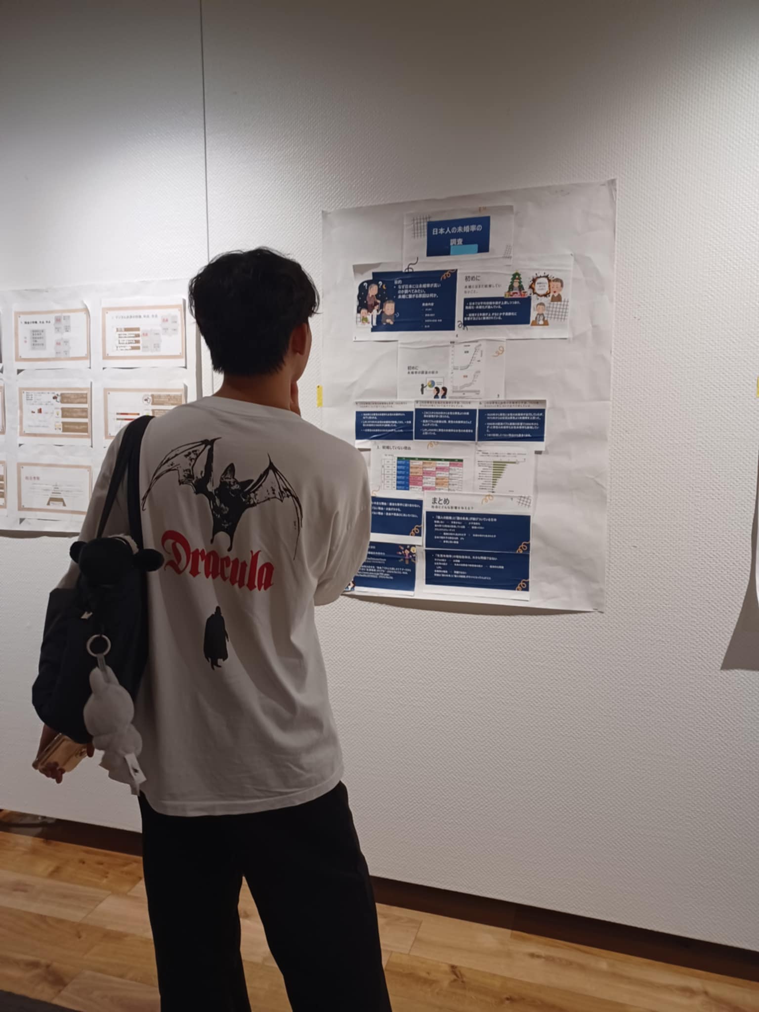 初年度の学生は2023年に2年次学生として、最も早く受け入れてくださった滋賀大学と島根大学での研修を経験しました。その留学生たちが、帝京大学での生活に加え、日本の他の地域での生活も経験した上で2024年度には3年生となり、「発展日本語Ⅴ」という授業の中で、日本の生活や文化について感じた疑問点を出発点として研究課題を立て、それに対する調査を行い、ポスターの形にして発表を行いました。