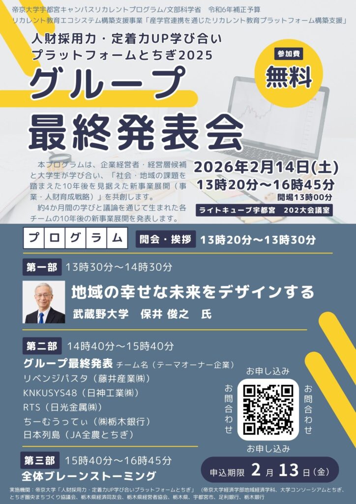 「人材採用力・定着力UP学び合いプラットフォームとちぎ2025」受講生による、成果報告会を実施いたします。