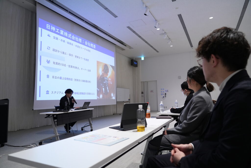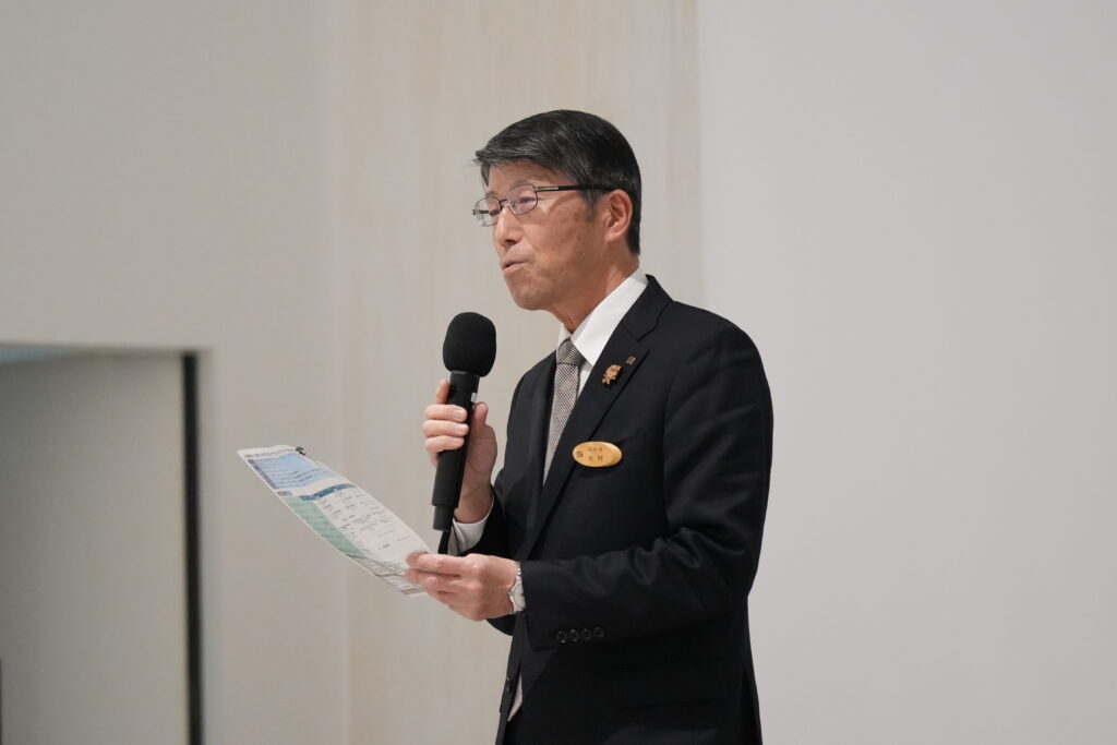 来賓挨拶では、本プログラムが産学官連携による実践的な取り組みであることが紹介されました。 若者流出や人材不足という地域課題に対し、学生と企業が共に未来を構想する意義が強調され、10年後を見据えた挑戦に対する期待が寄せられました。
