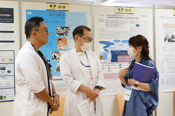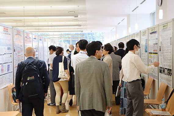 2024年8月30日(金)、帝京大学板橋キャンパスにて第7回帝京大学研究交流シンポジウムを開催しました。本シンポジウムは、本学が年に一度、教職員を中心に学内におけるキャンパス間や専門分野を超えた最新の研究活動の情報発信と交流の場として、2018年から実施しています。7回目となる今回は、昨年に引き続き、パネルディスカッションはオンデマンド、ポスターセッションはオンサイトでの、ハイブリッド形式にて全キャンパス合同で行いました。ポスターセッションは、あいにくの天候にもかかわらず、本学の教員を中心に414人が参加し、これまでで最大規模の296件のポスター展示が実施され、活発な意見交換が行われる有意義な場となりました。