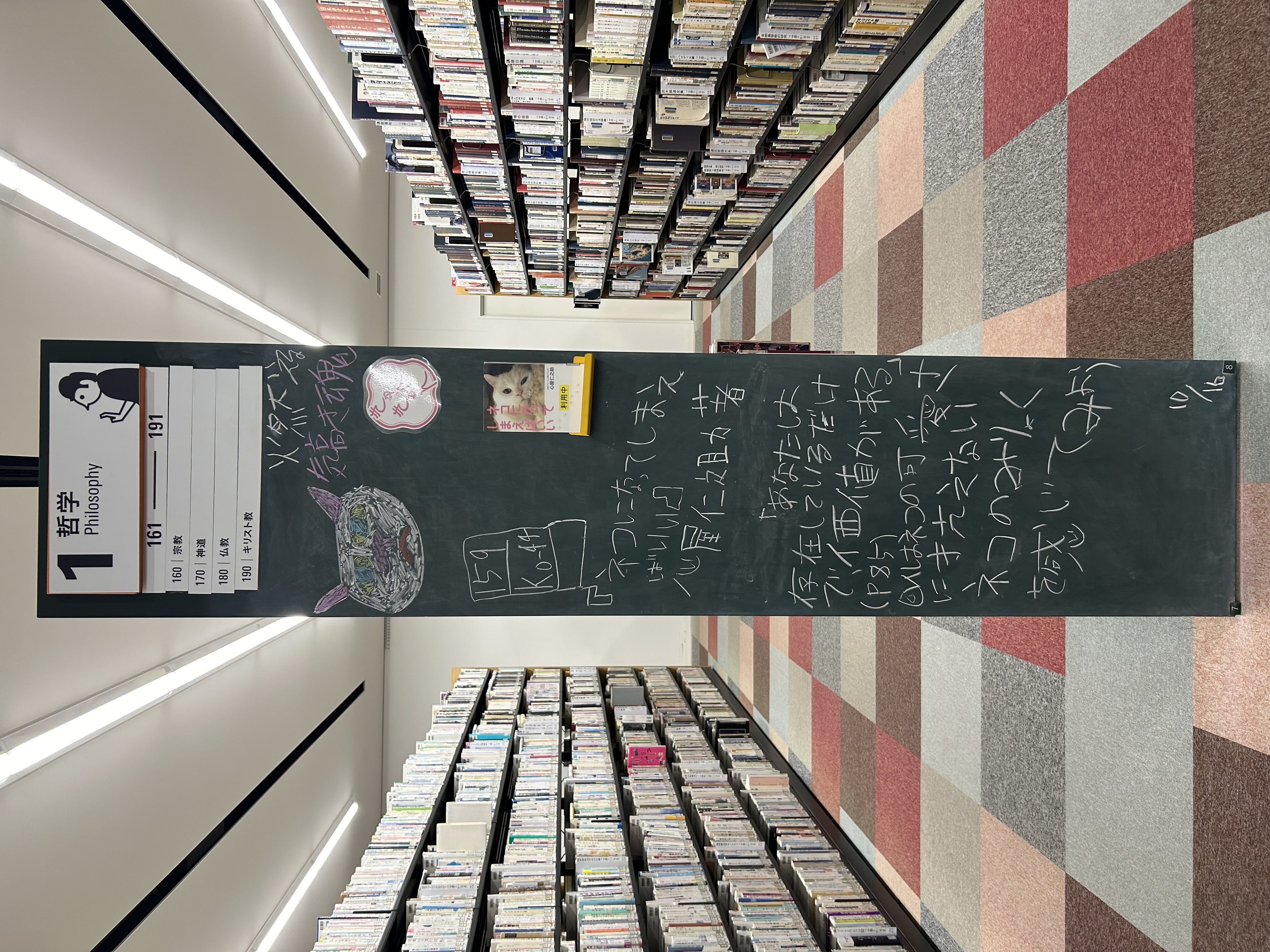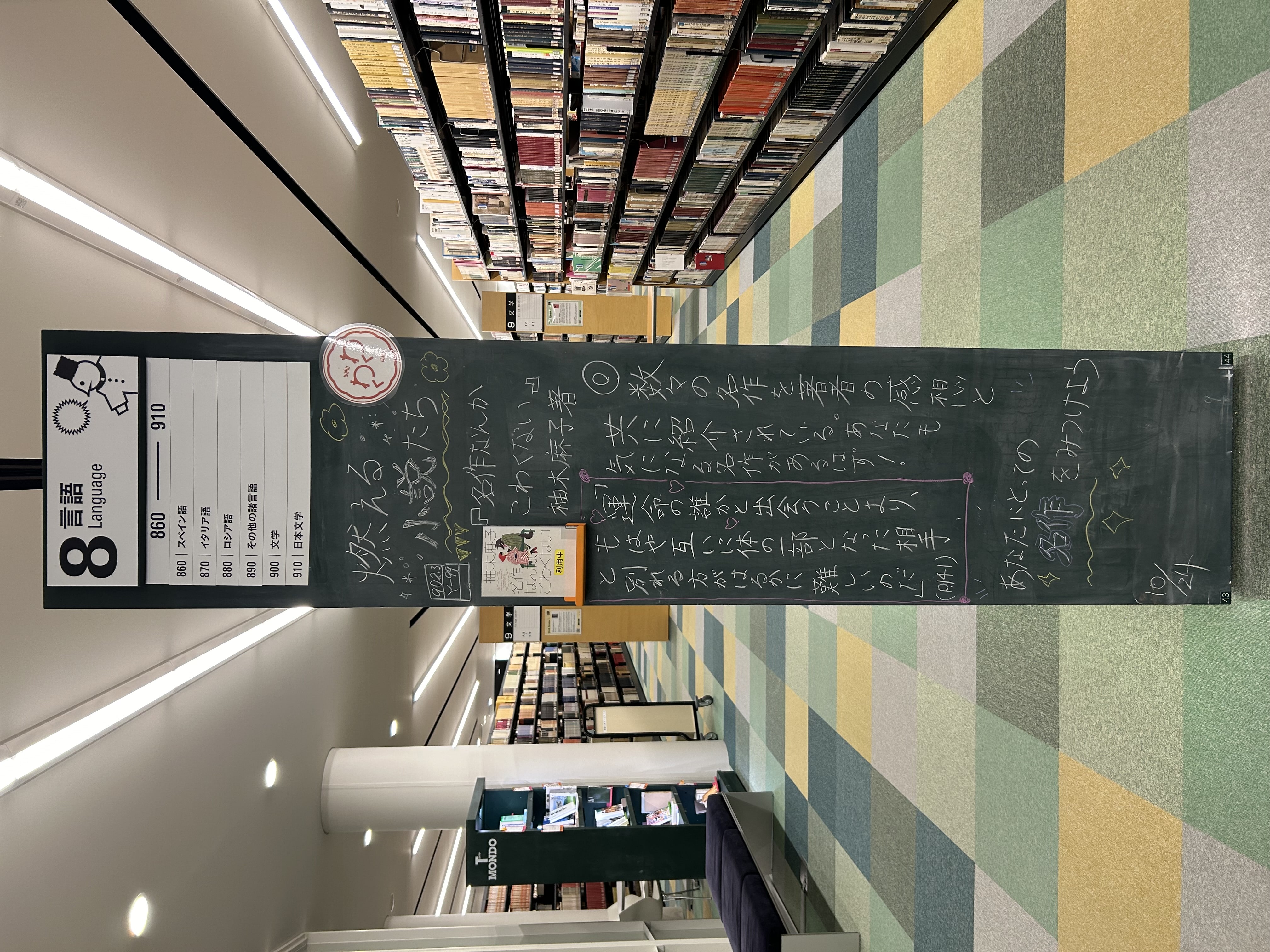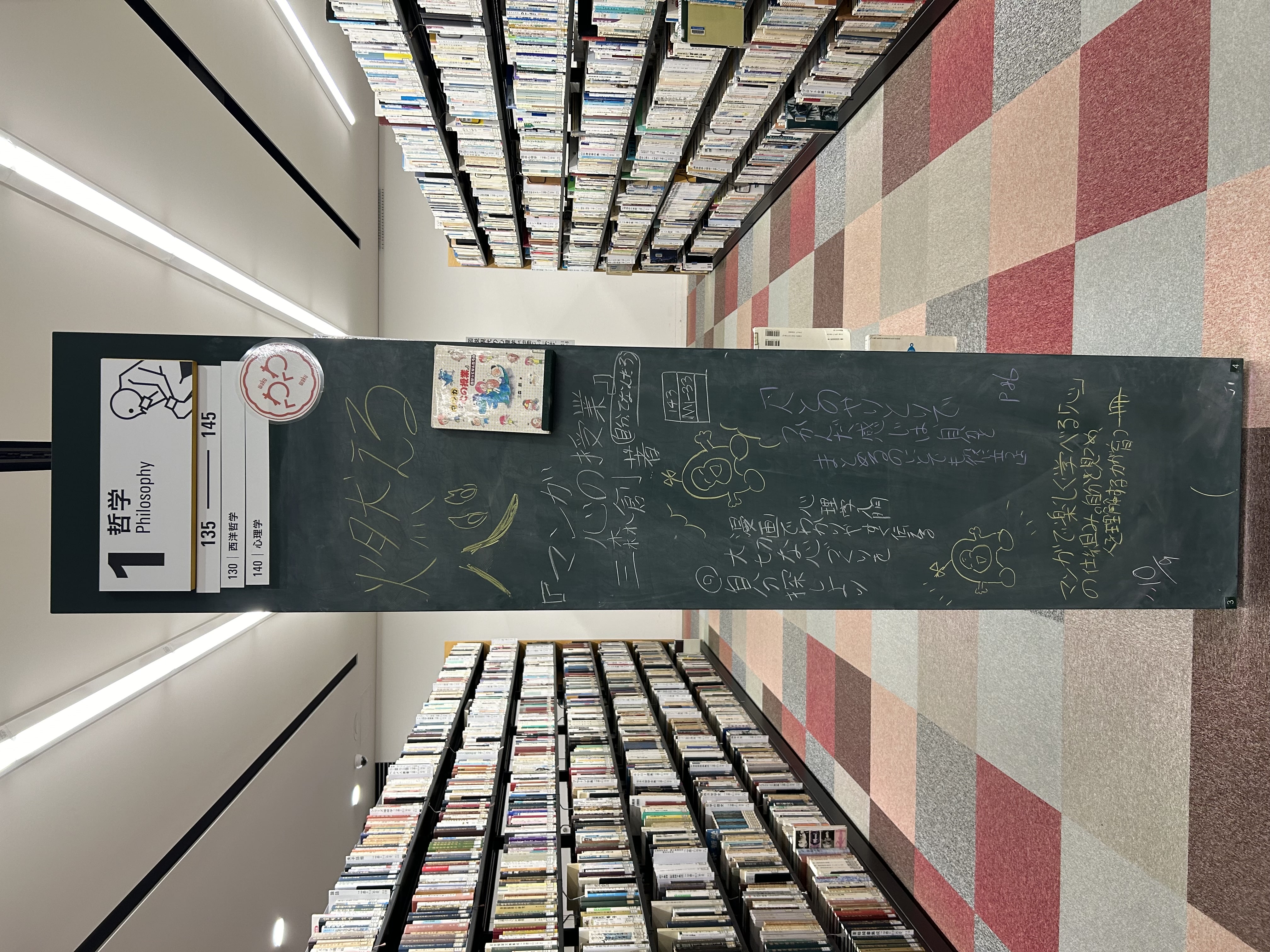 知のシャワーを浴びながらウィンドウショッピング気分で本探しを楽しんでください。側面の黒板(側板)では、共読サポーターズがおススメの1冊を手書きのコメントで紹介しています。