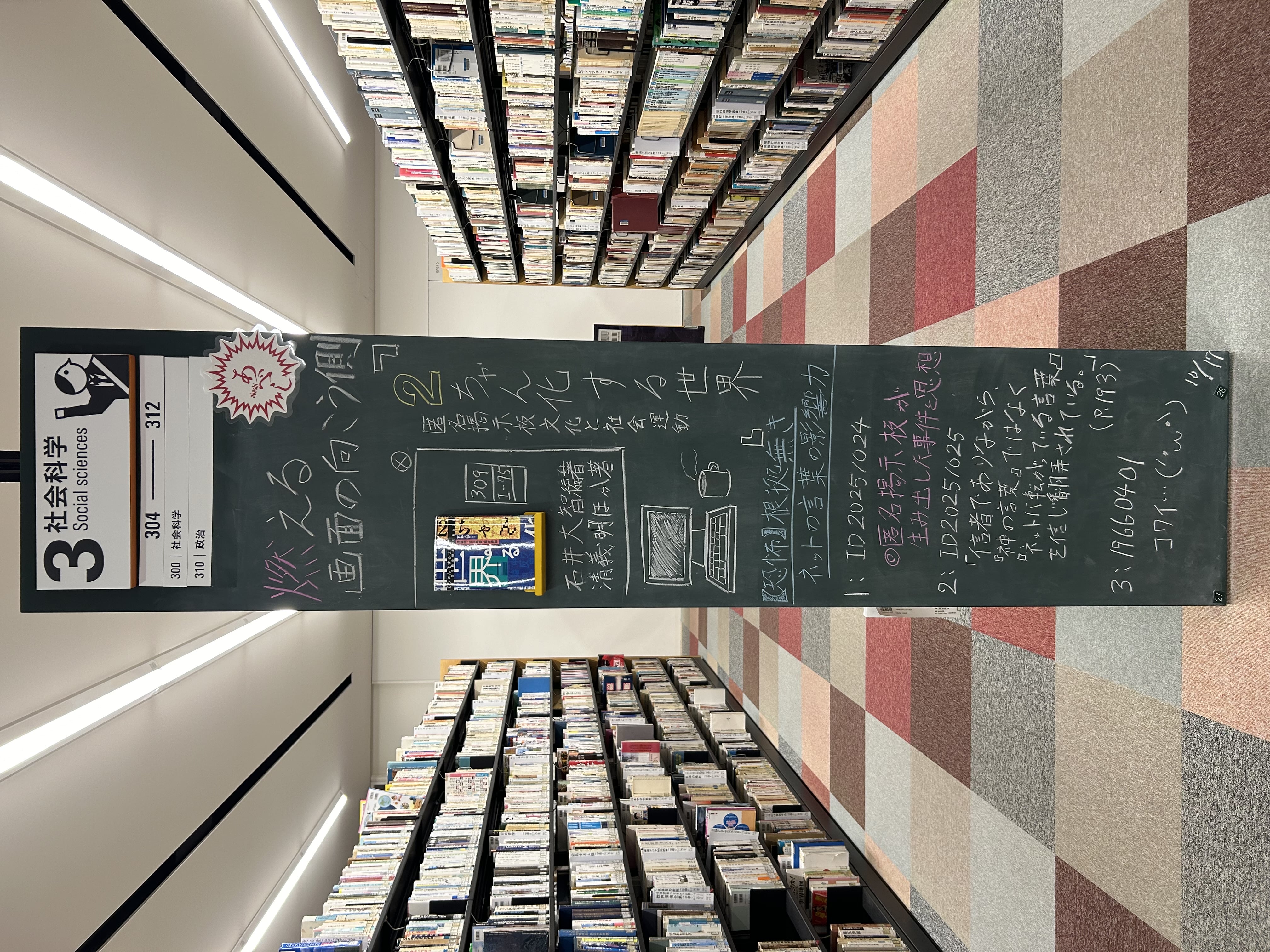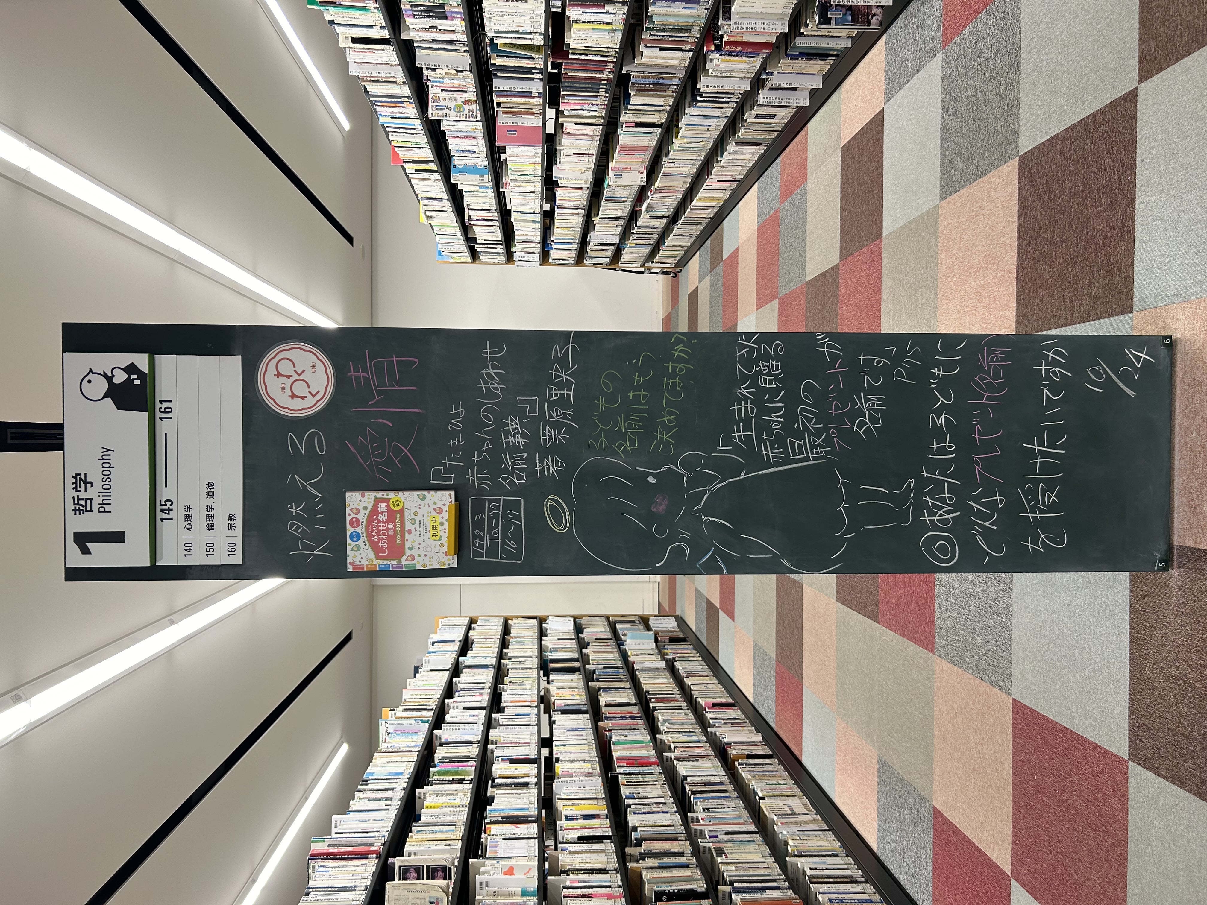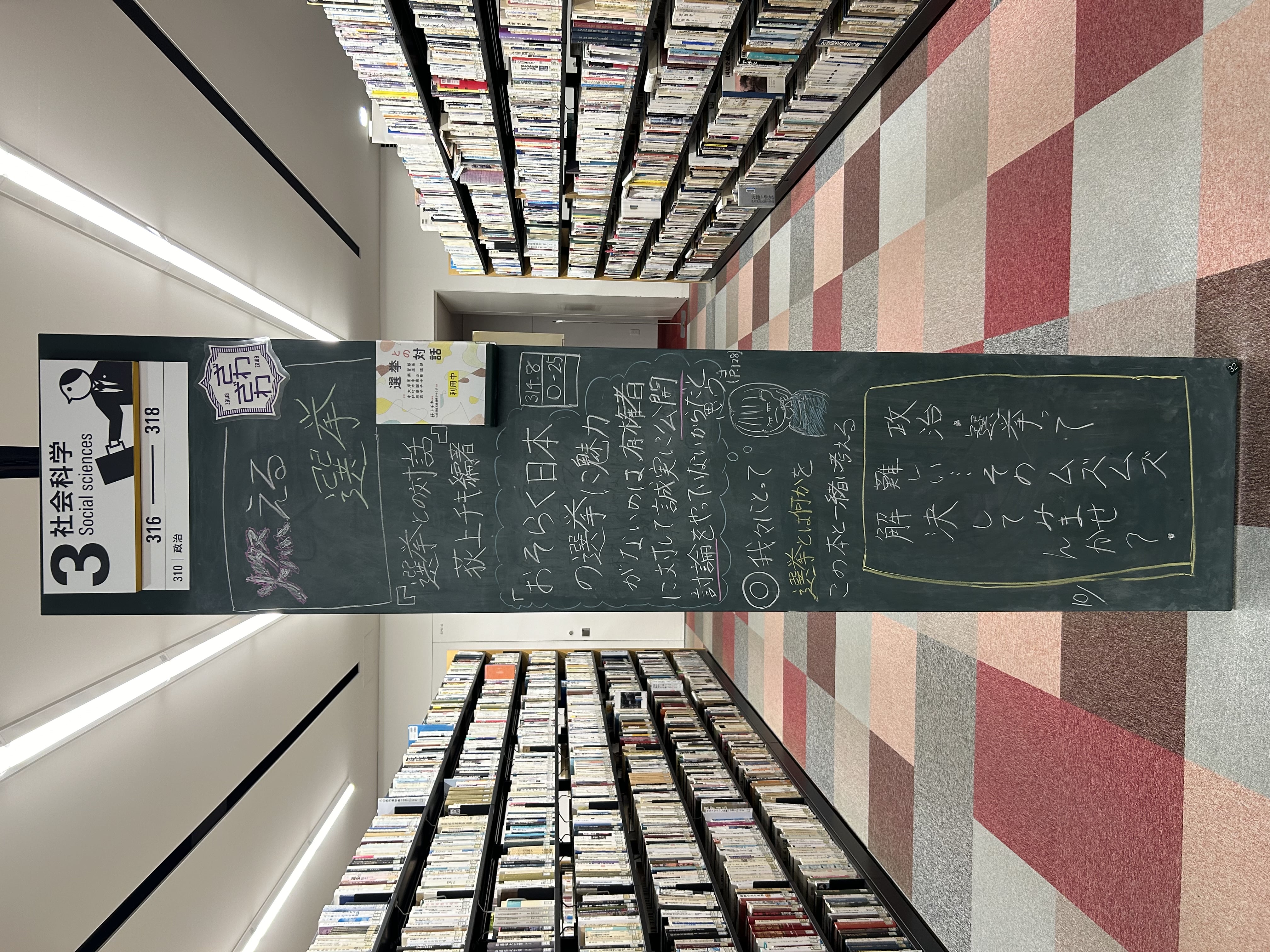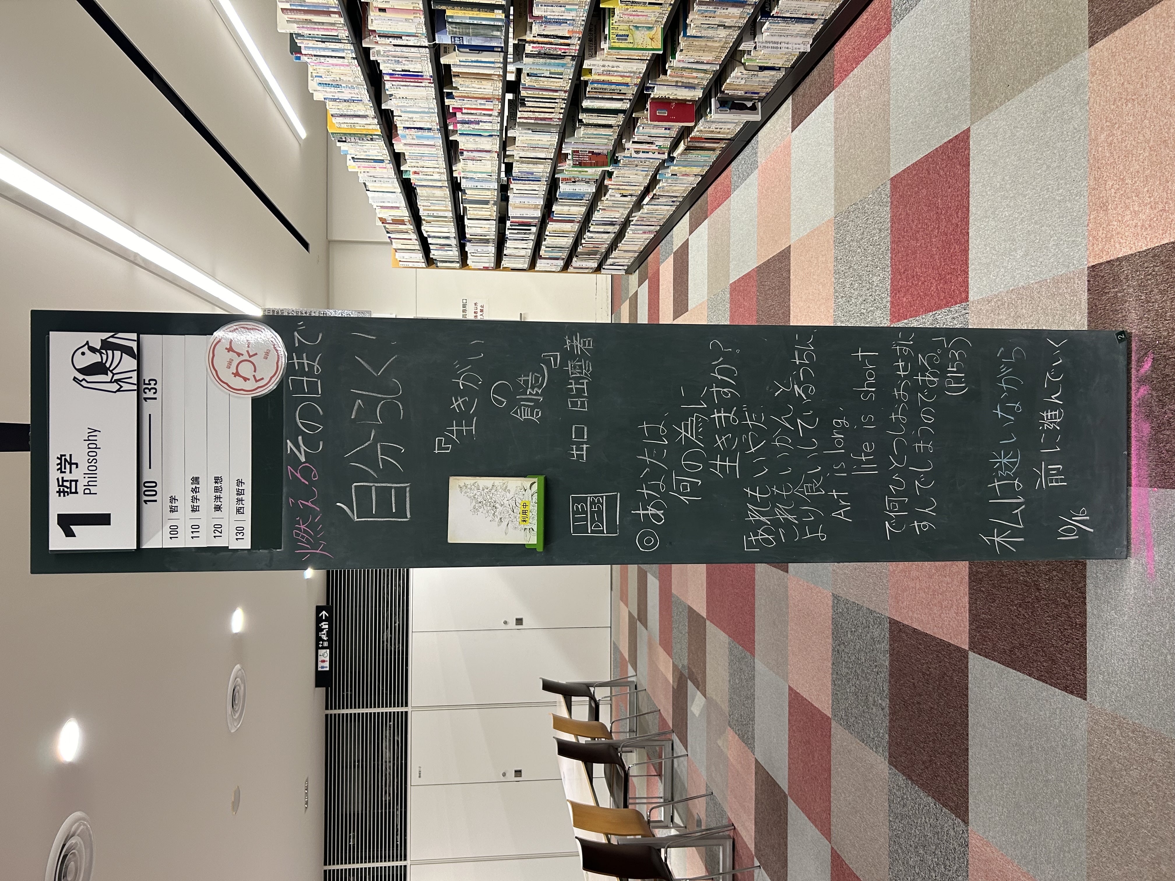 知のシャワーを浴びながらウィンドウショッピング気分で本探しを楽しんでください。側面の黒板(側板)では、共読サポーターズがおススメの1冊を手書きのコメントで紹介しています。