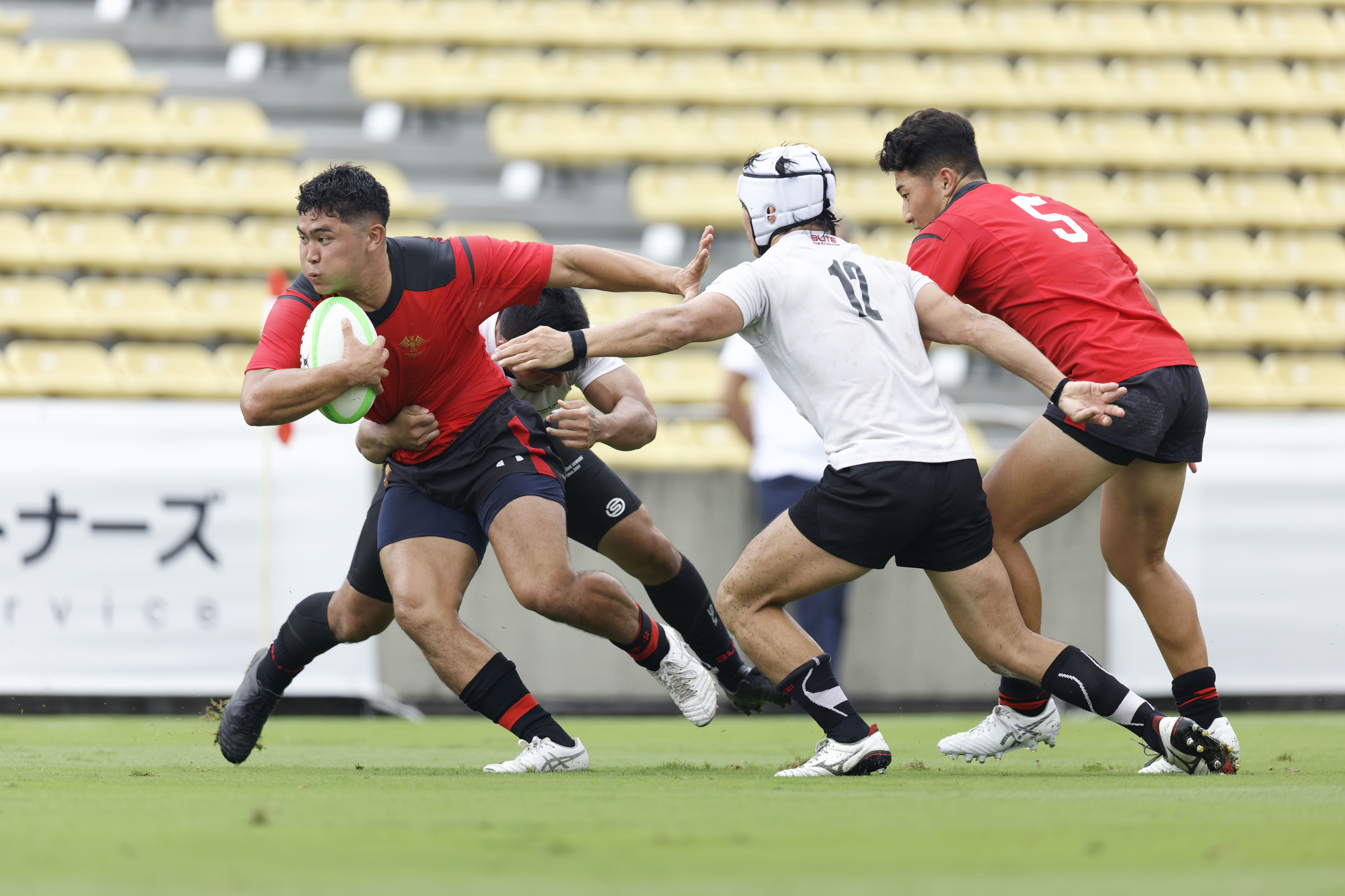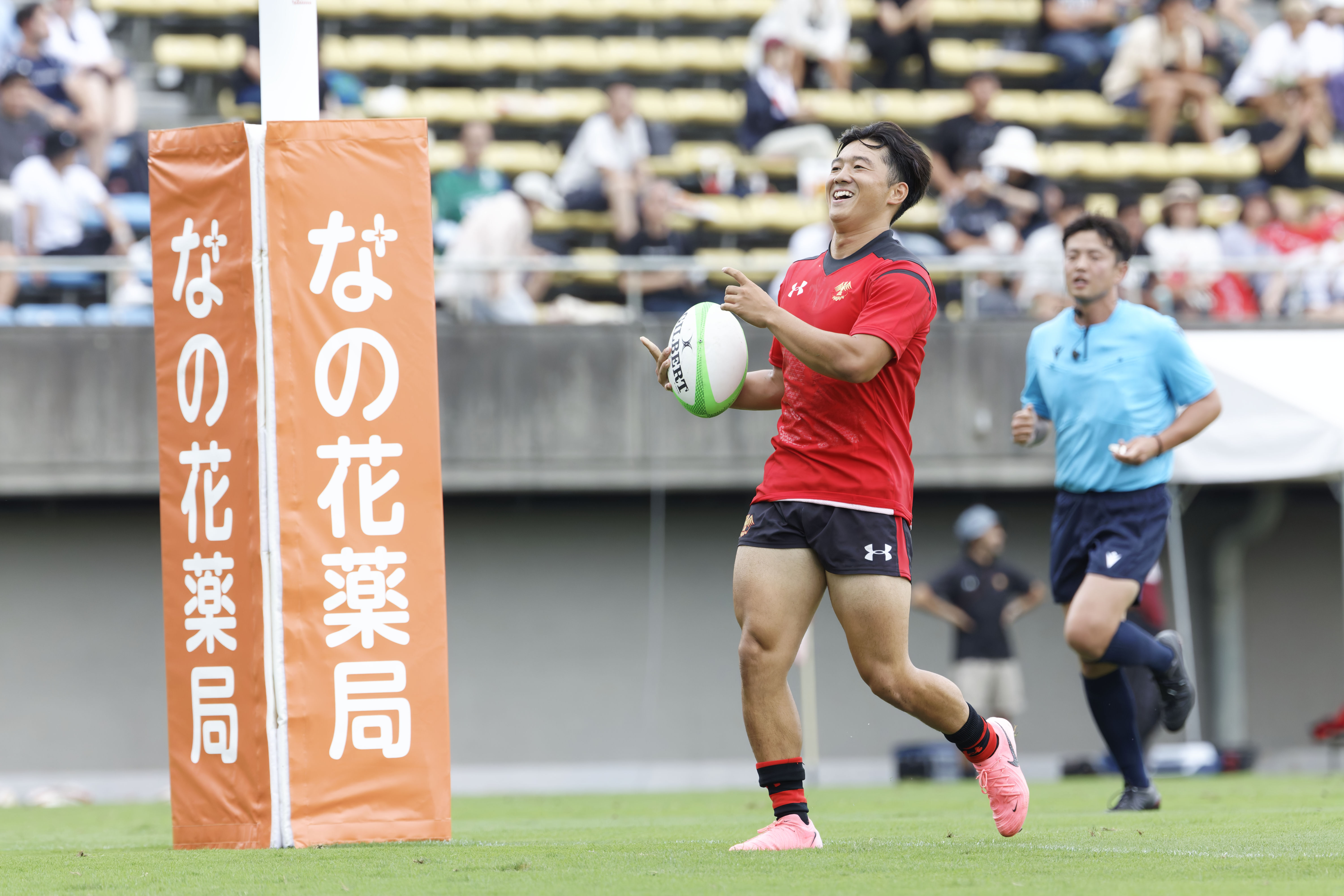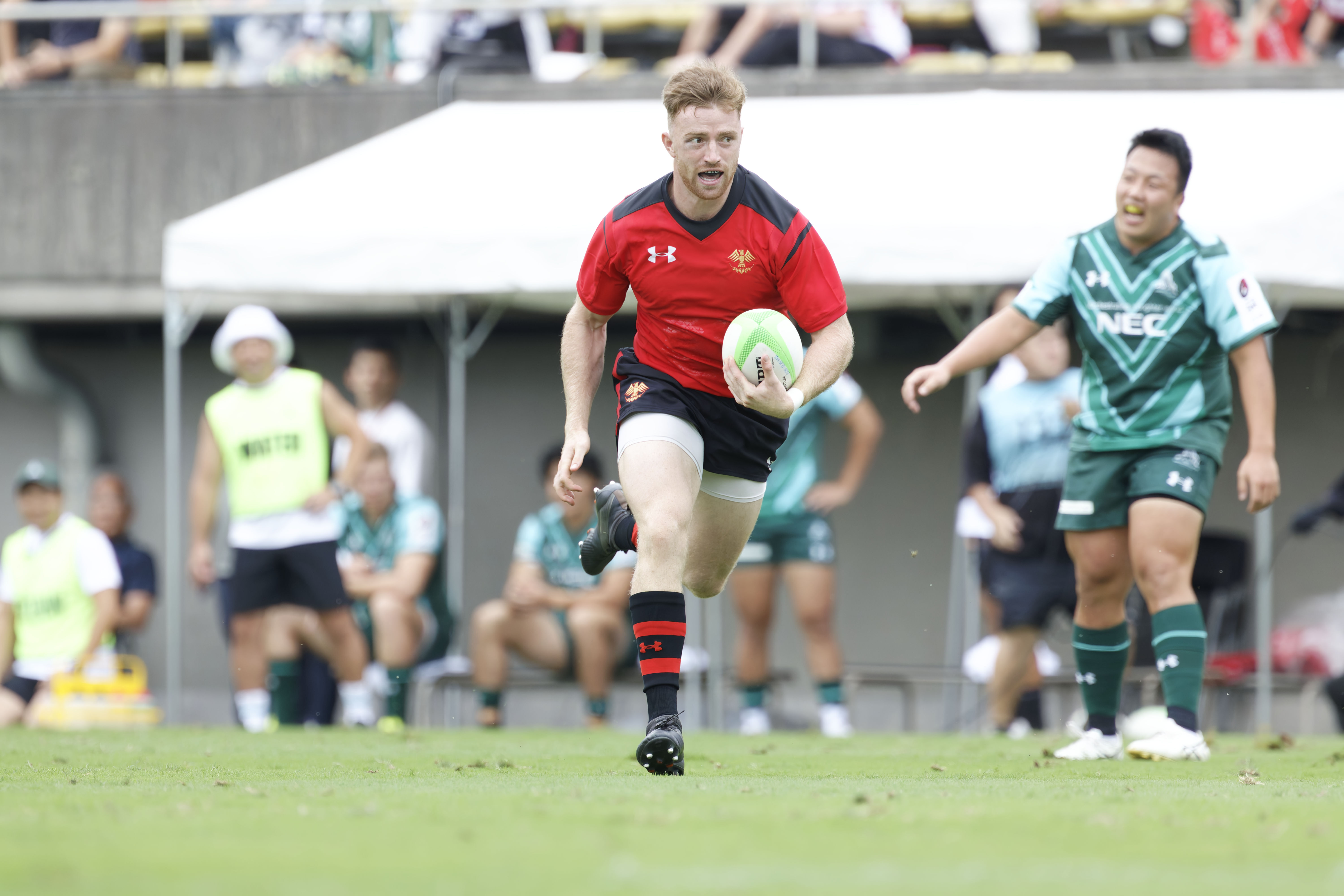 最初の試合となるM2は、神奈川タマリバクラブとの試合。開始早々、山田(駿)のトライで先制するが、その後、ペナルティから失点。6分には山本のトライで突き放し、14-7で前半を折り返す。