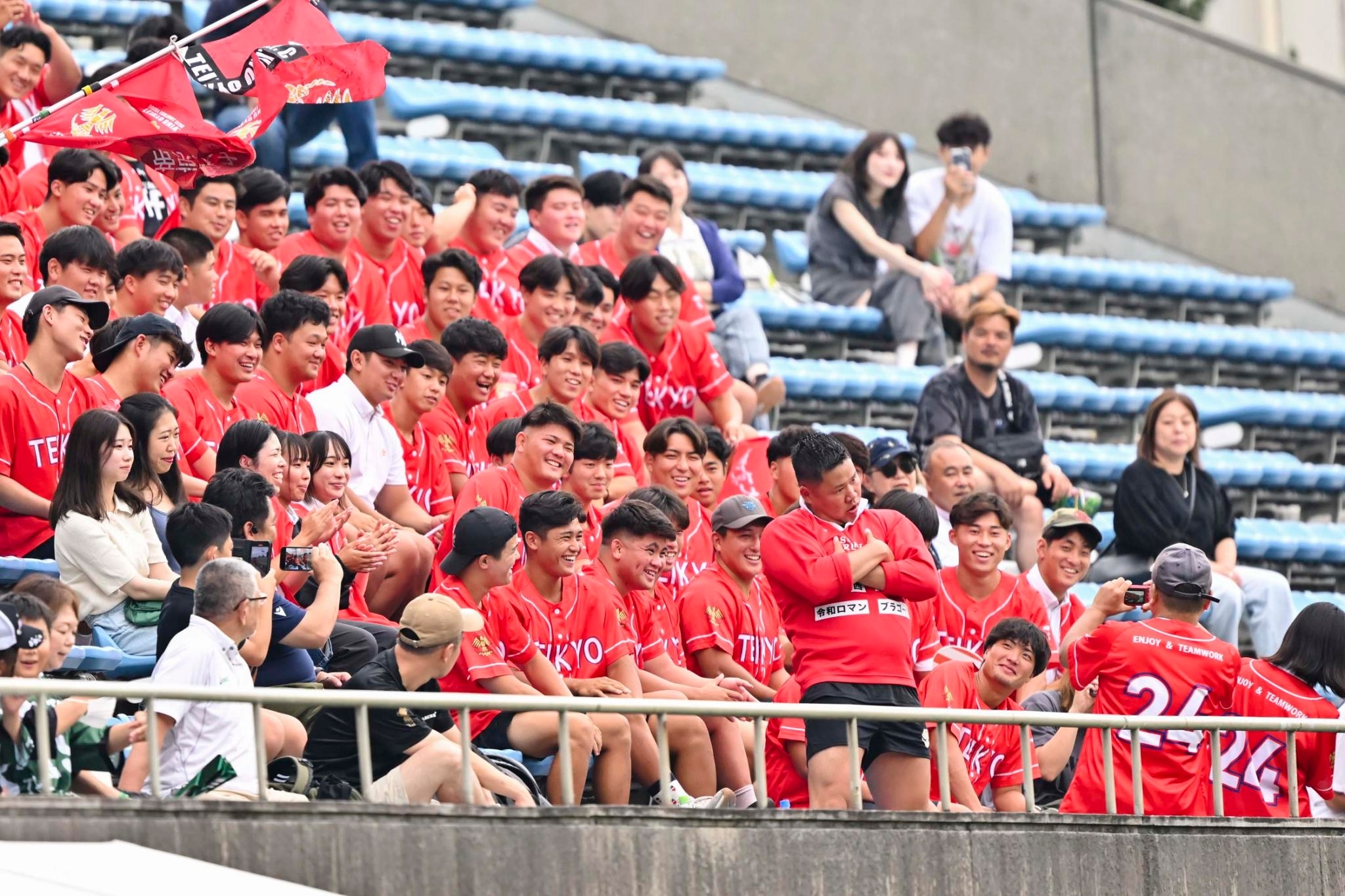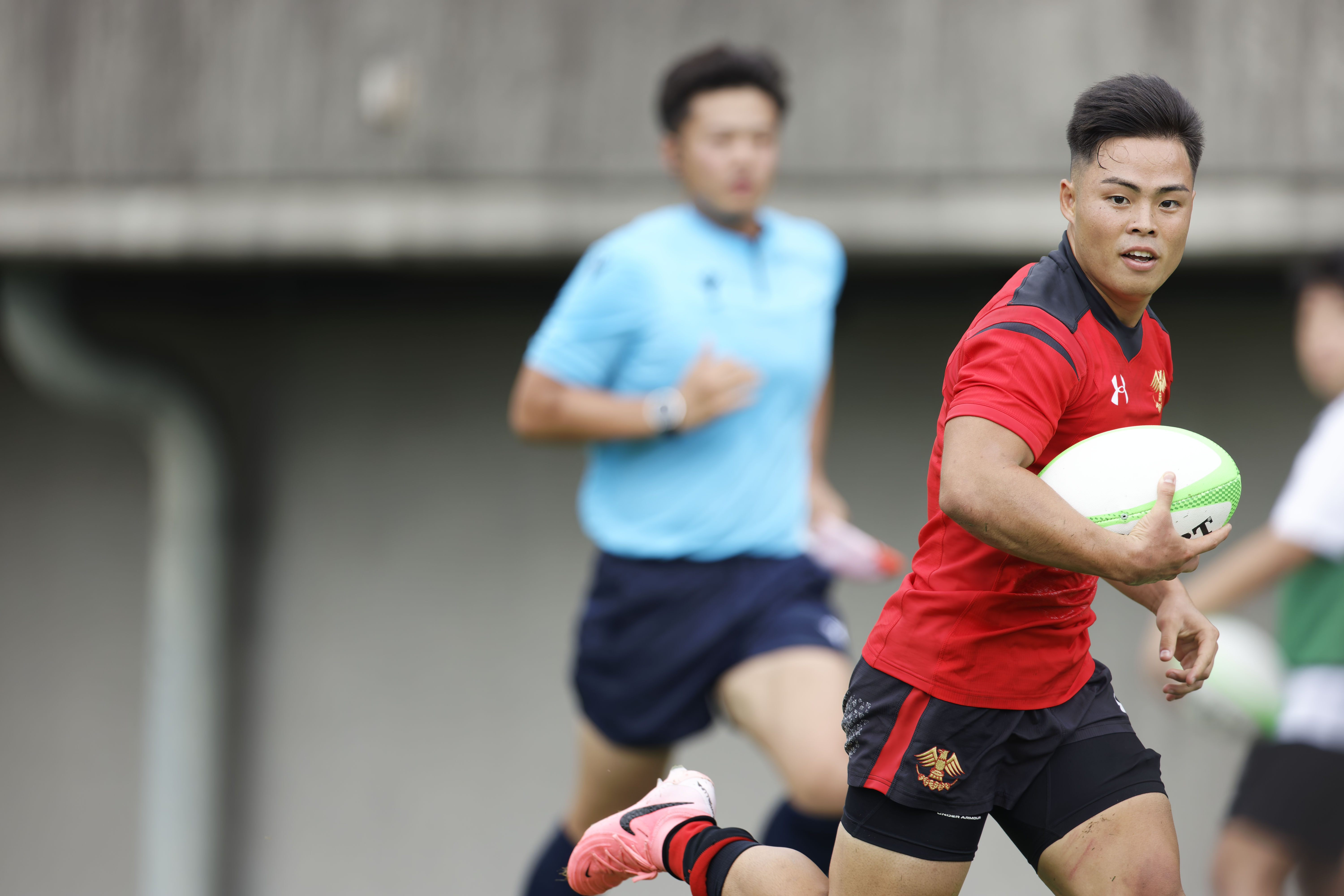 ただ、リーグワンのチーム相手でも帝京はひるまない。相手のミスしたボールを山田がうまく拾って、ディフェンスを弾き飛ばして独走。トライを奪い、同点とする(5-5)。この後は一進一退。帝京はキック処理がうまくいかず、相手に繋がれると、またもOB大和田にトライを許す。返しのキックオフから帝京は外へと展開。寺山がうまく抜け出し、独走してトライ(12-10)。