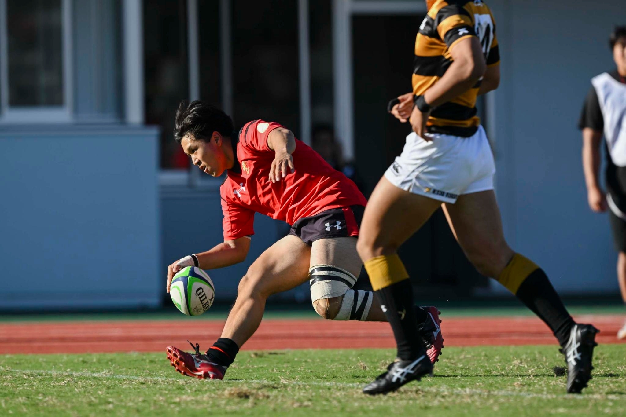 その後、ペナルティからピンチになるが、LO本橋(拓)らの好タックルで相手のノックオンを誘う。