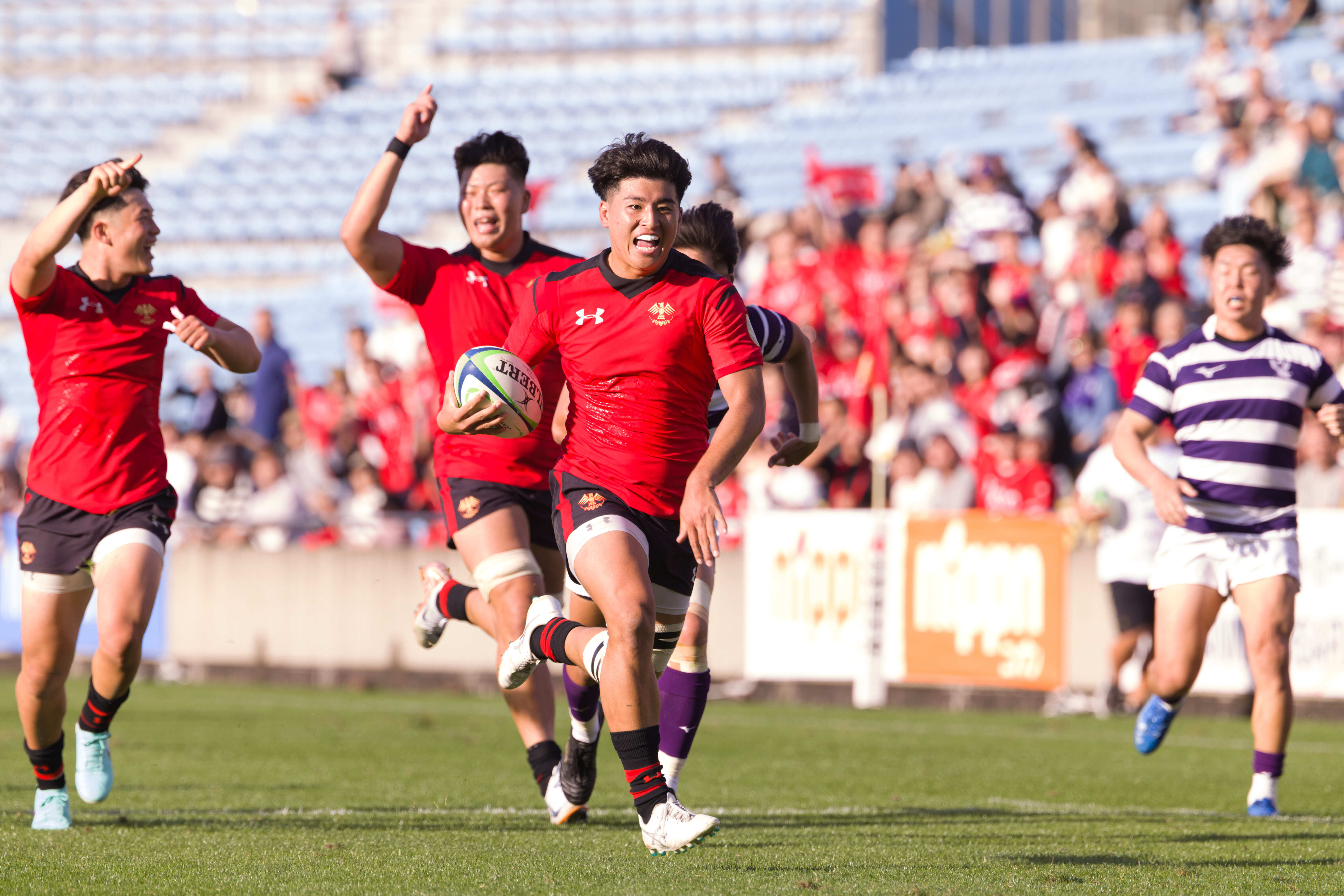 終了間際の44分にラインアウトからモールを押し込まれてトライを許すが、ここでノーサイド。帝京が48-28で勝利した。