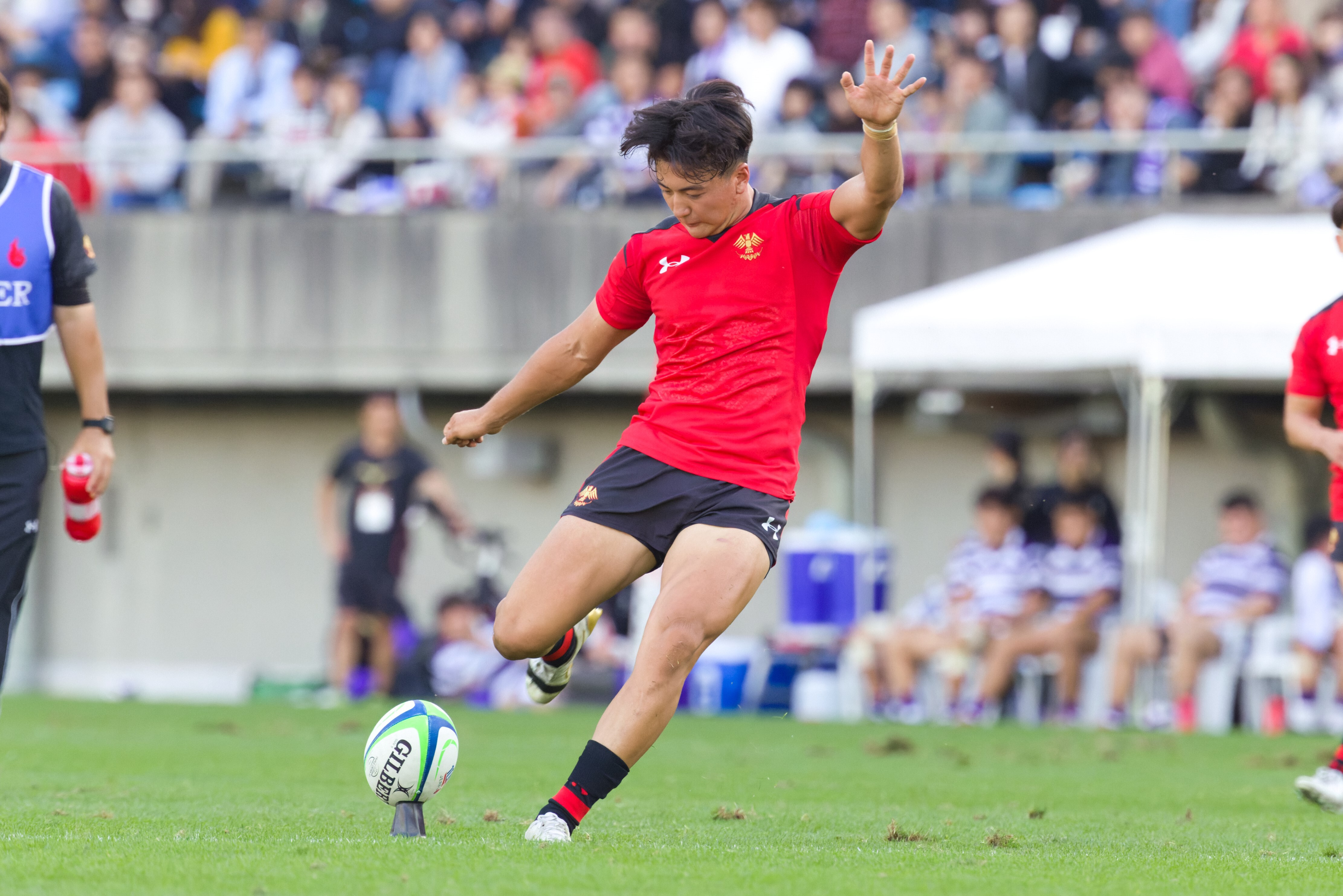 それでもピンチは続くが、SO本橋(尭)らの好タックルでターンオーバーし、CTB生田が前進。さらにFB小村のキックパスをWTB日隈がキャッチしてチャンスを作る。