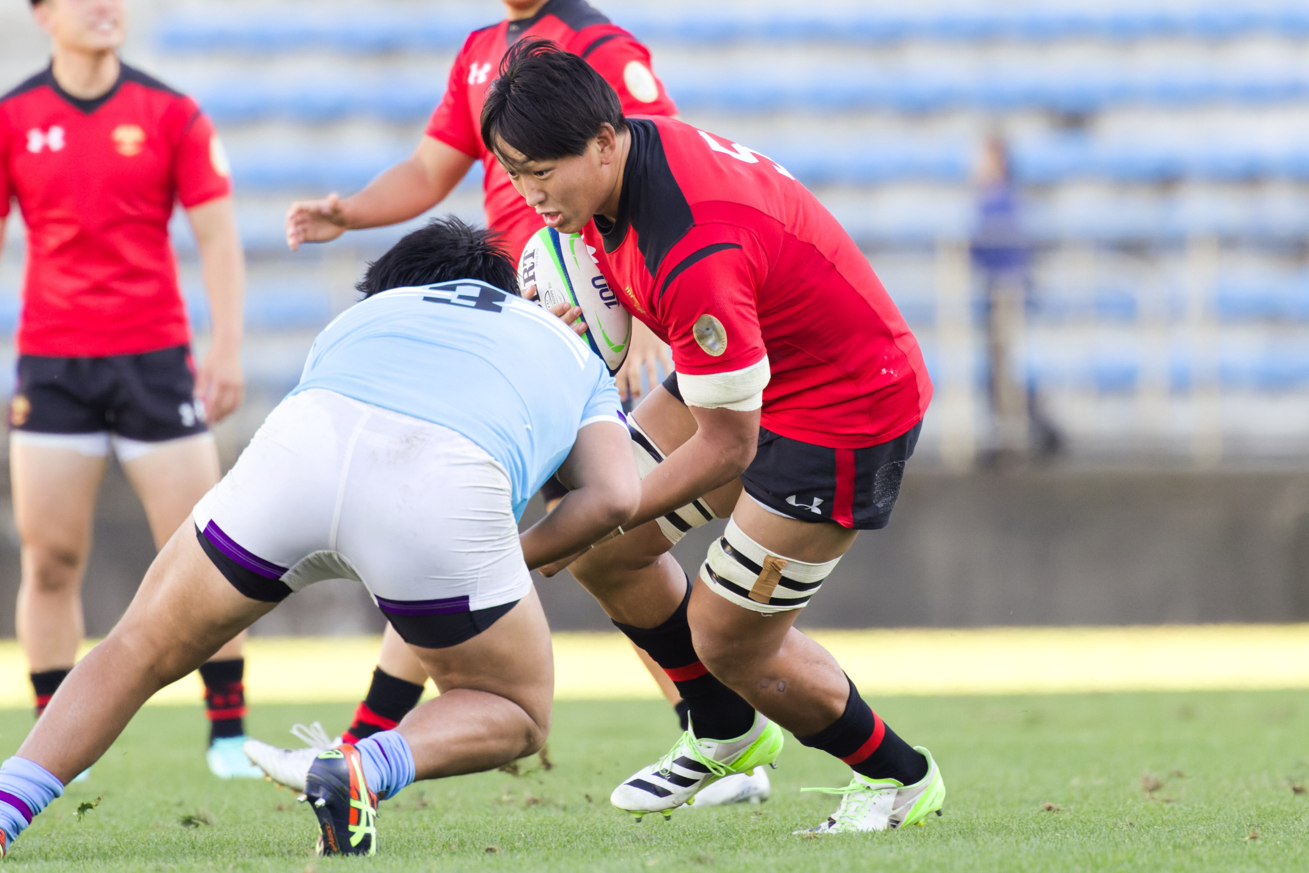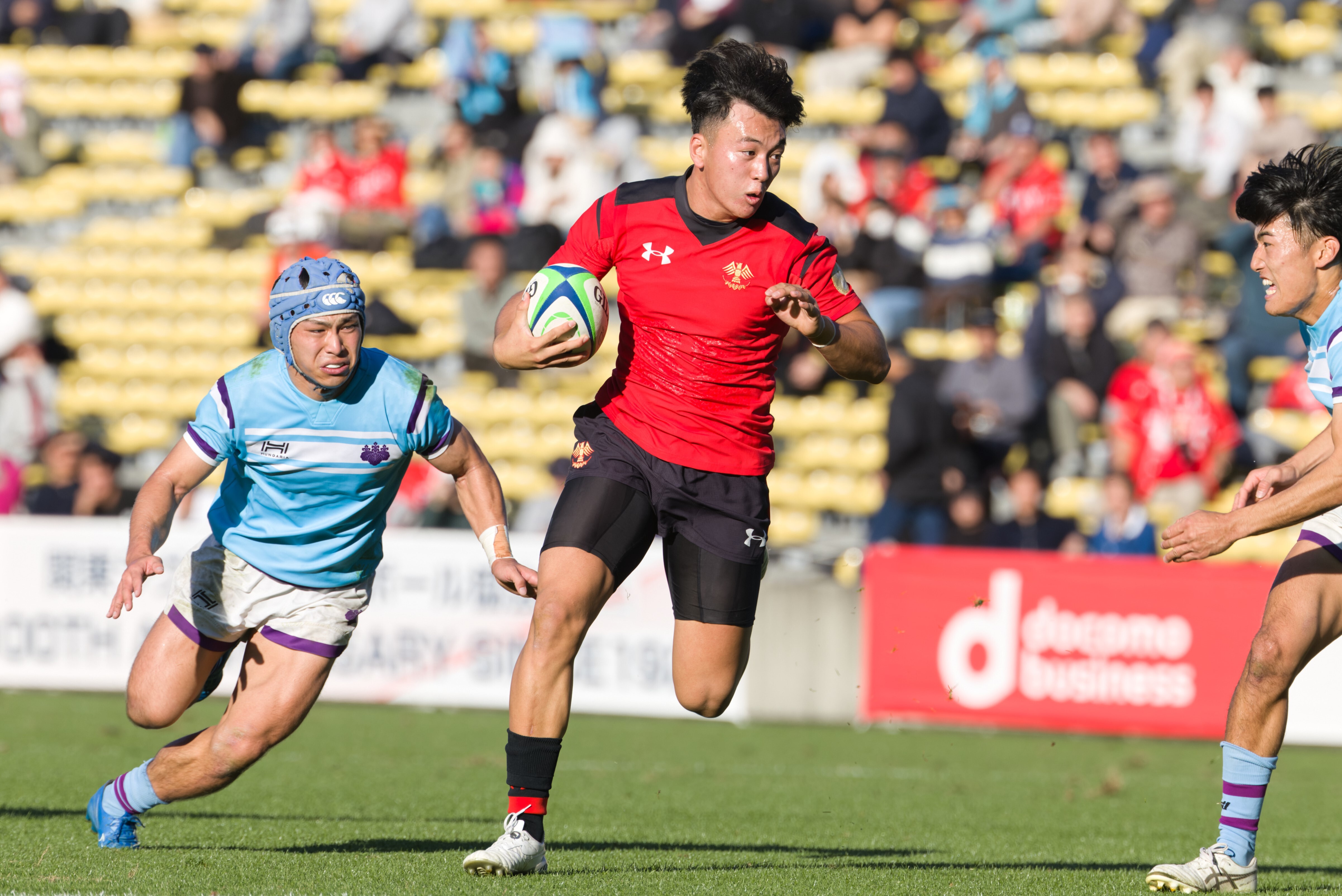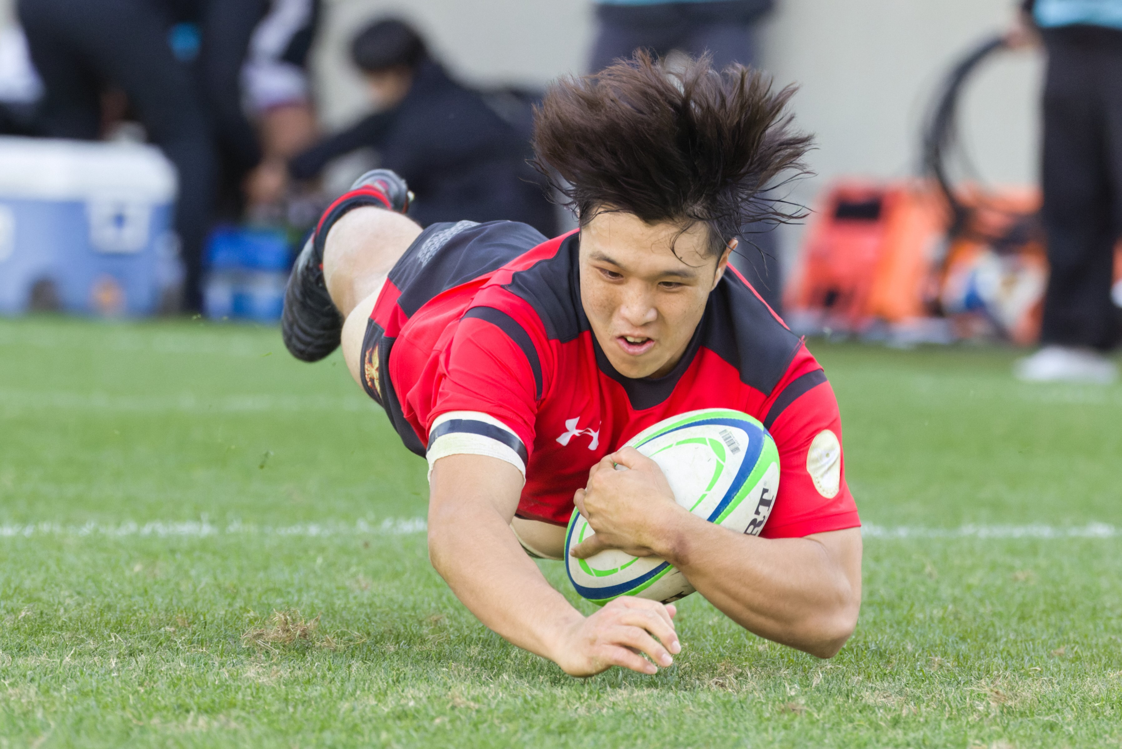 攻められる場面もあるが、FL森元のジャッカルなどで防ぐ。大きなチャンスで最後にミスが出るシーンもあるが、25分、FB小村のハイパントをWTB日隈が好キャッチして展開。ラックからSH李-FB小村-LO本橋(拓)-SO本橋(尭)-FL青木-CTB上田-WTB日隈とつなぎ、日隈がタックルを受けながらも手を伸ばしてトライ(21-0)。