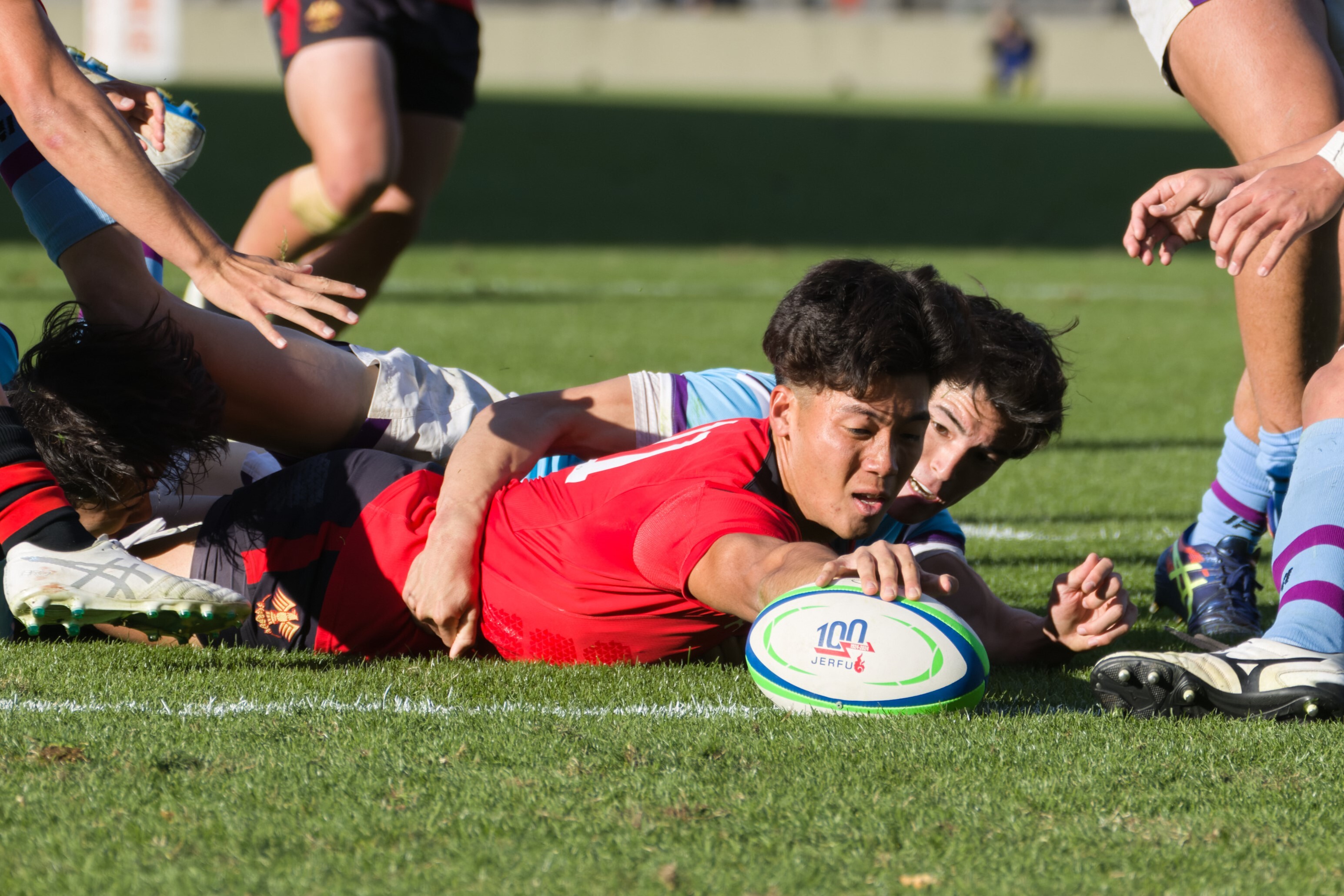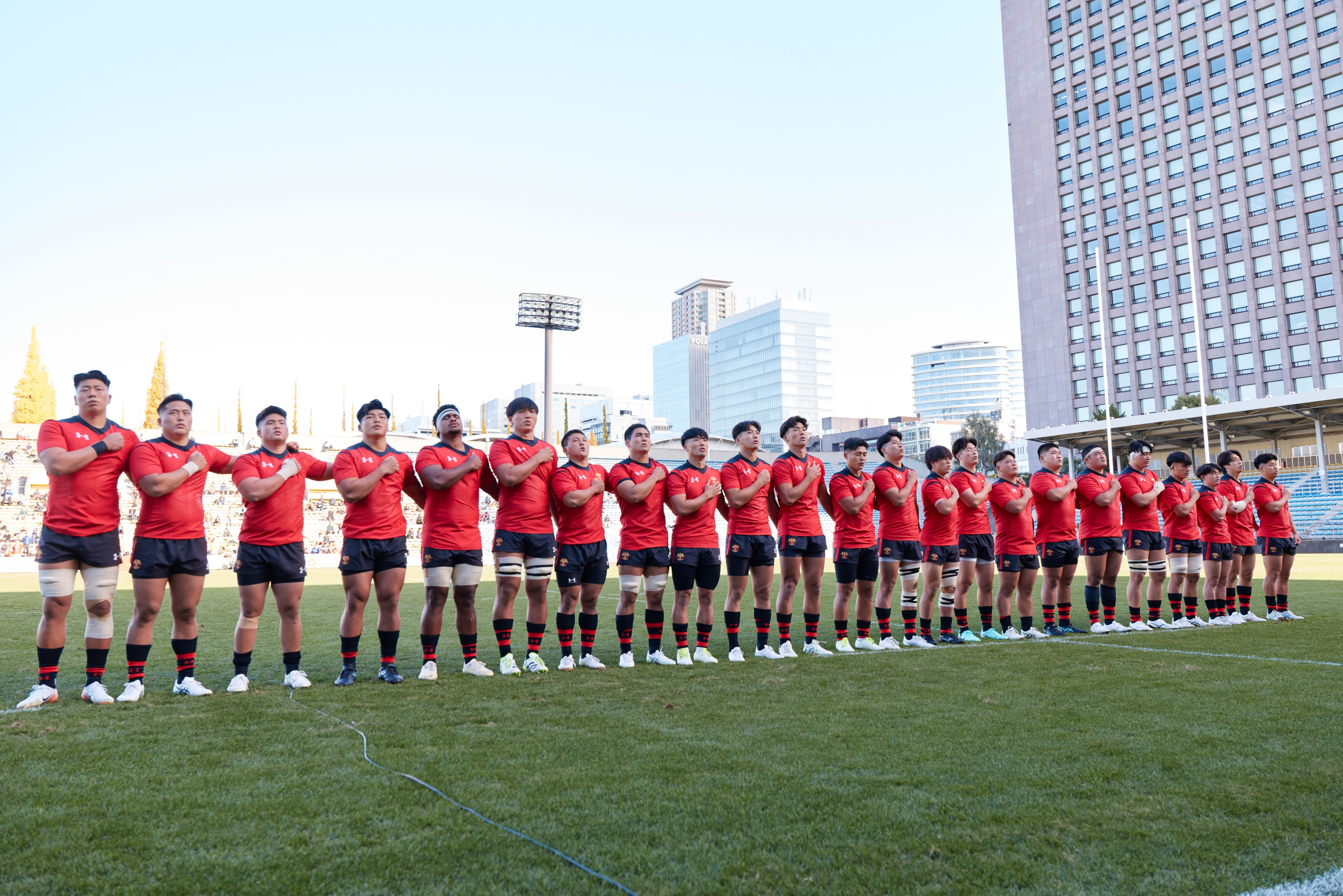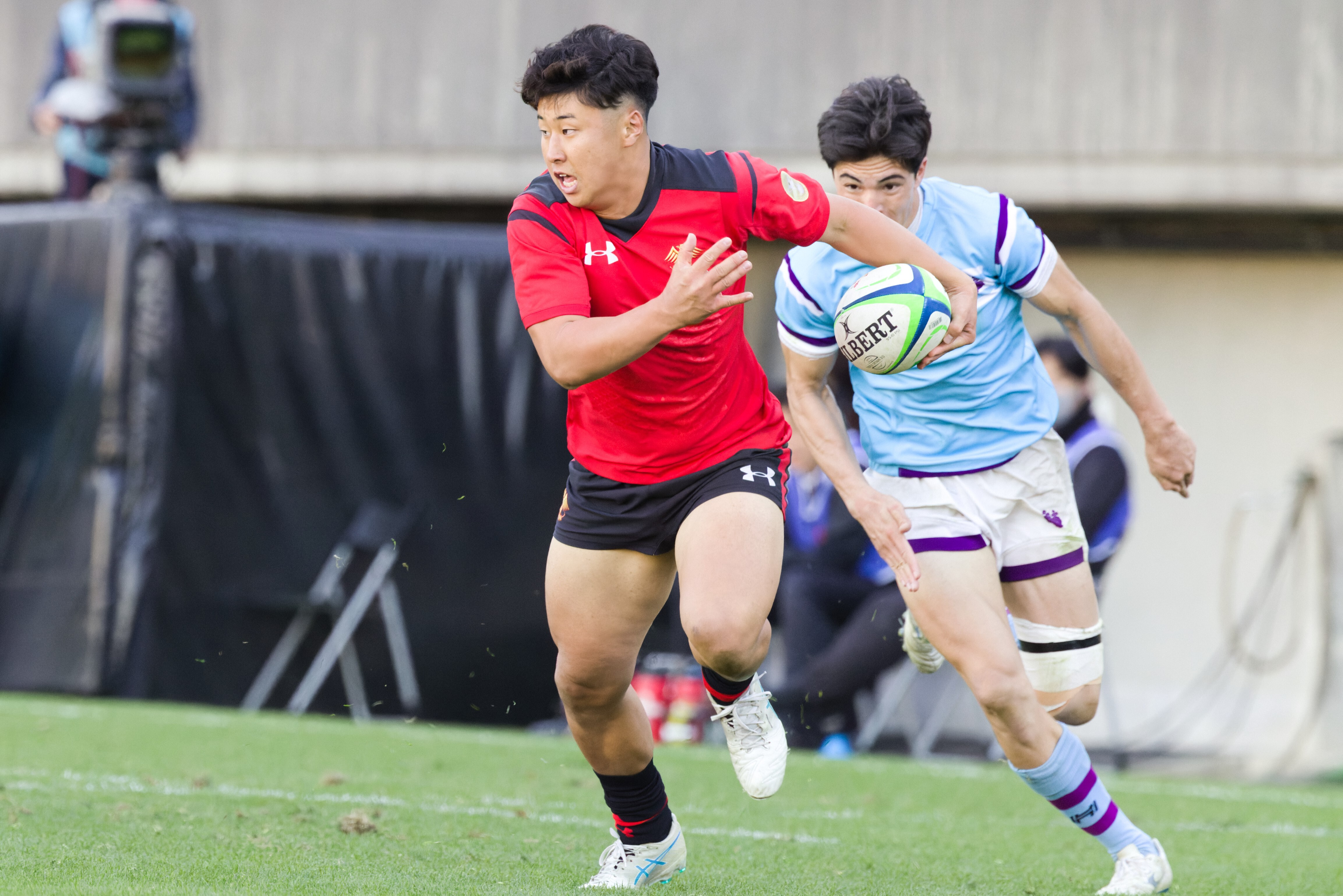 攻められる場面もあるが、FL森元のジャッカルなどで防ぐ。大きなチャンスで最後にミスが出るシーンもあるが、25分、FB小村のハイパントをWTB日隈が好キャッチして展開。ラックからSH李-FB小村-LO本橋(拓)-SO本橋(尭)-FL青木-CTB上田-WTB日隈とつなぎ、日隈がタックルを受けながらも手を伸ばしてトライ(21-0)。