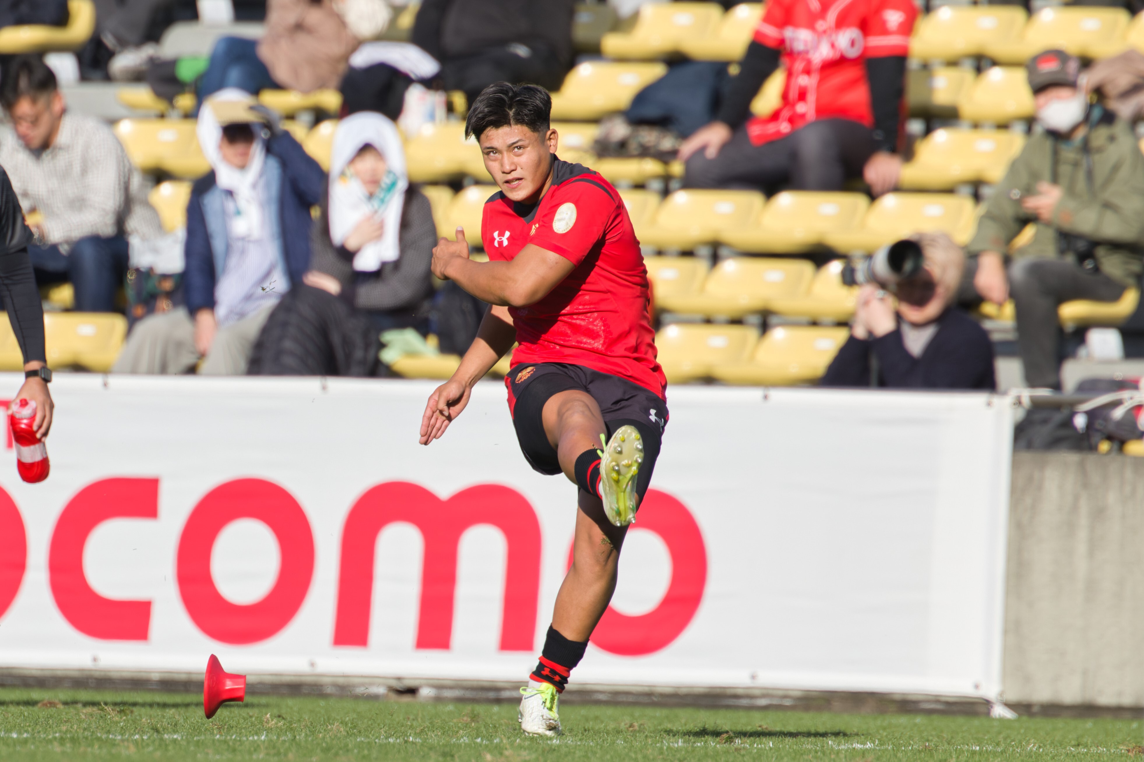 その後、攻められるシーンもあるが、SO本橋(尭)がインターセプト。さらに攻められる場面もあるが、SH李の好タックルなどで防ぐ。