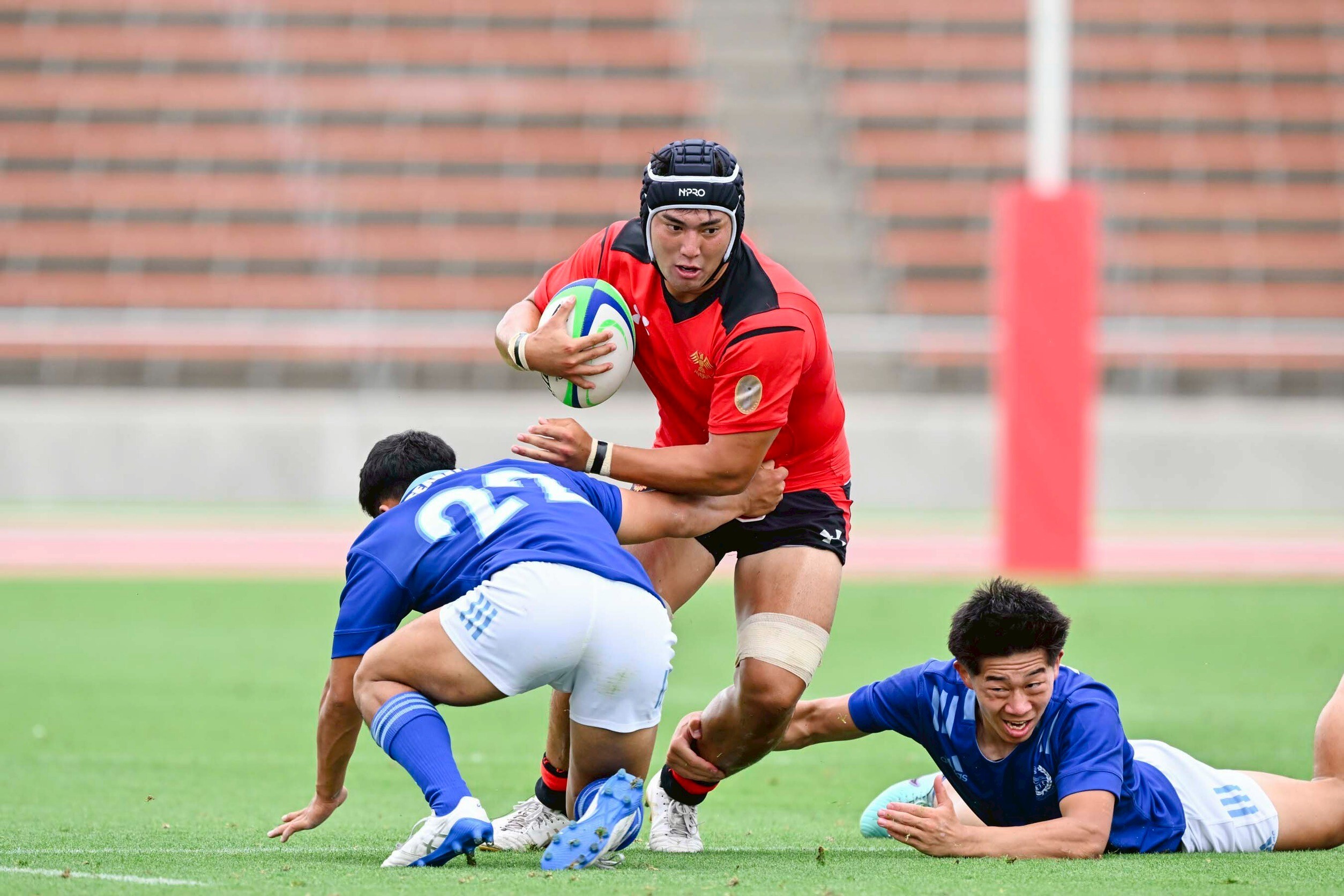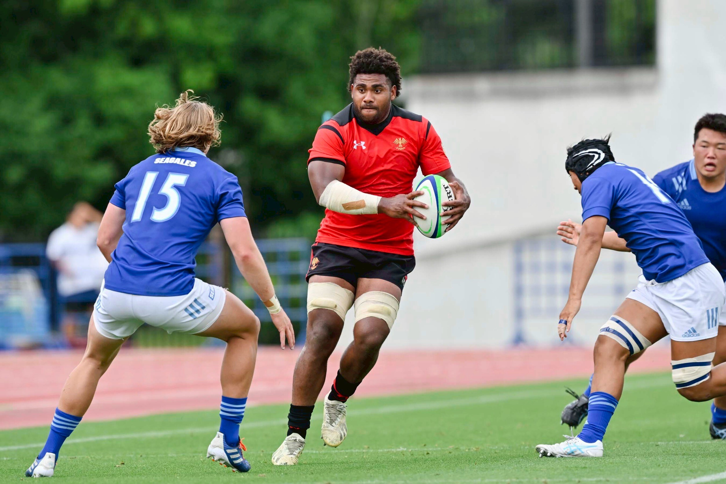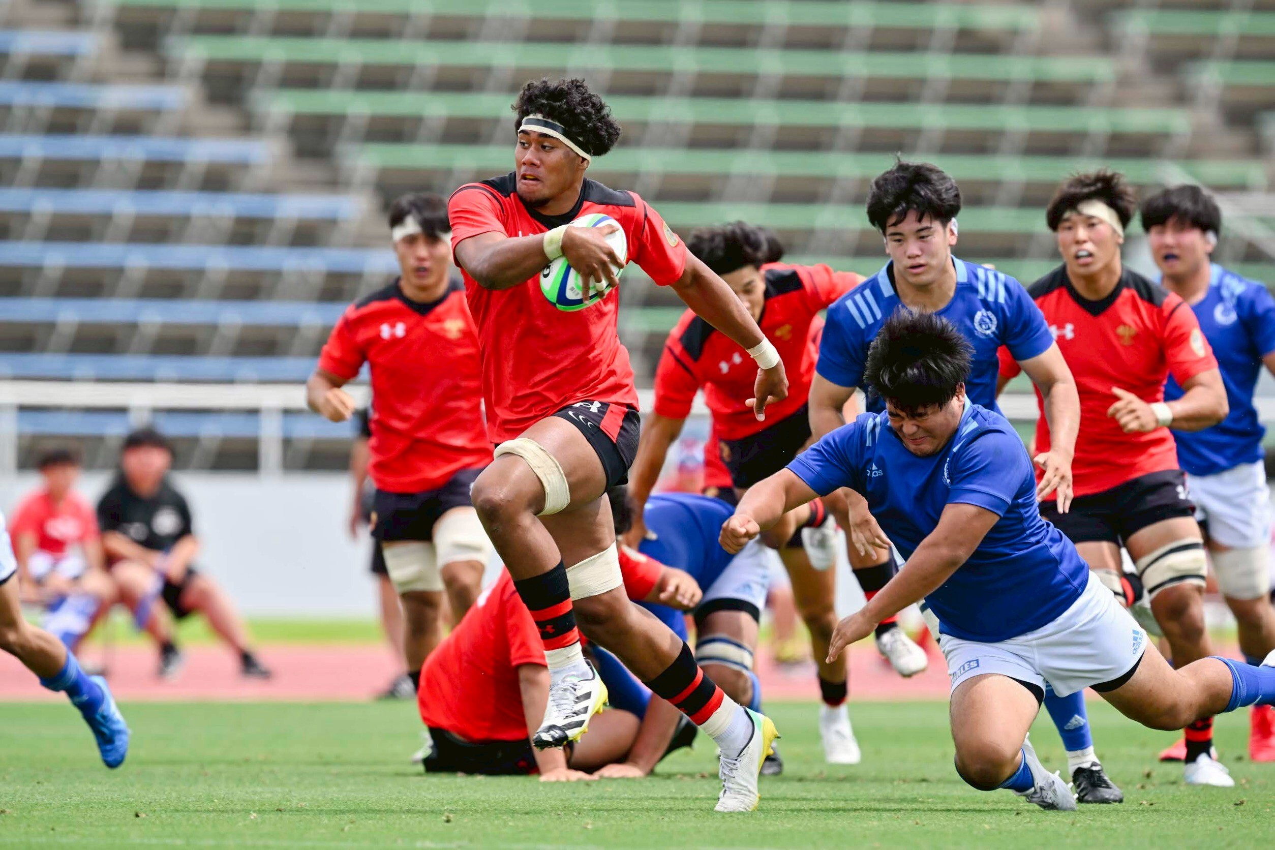 27分、ラインアウトからモールを押し切り、No.8ダウナカマカマがトライ(31-0)。32分には、ラインアウトからNo.8ダウナカマカマが前進してつなぐ。ラックからPR上野が持ち出してトライ(38-0)。
