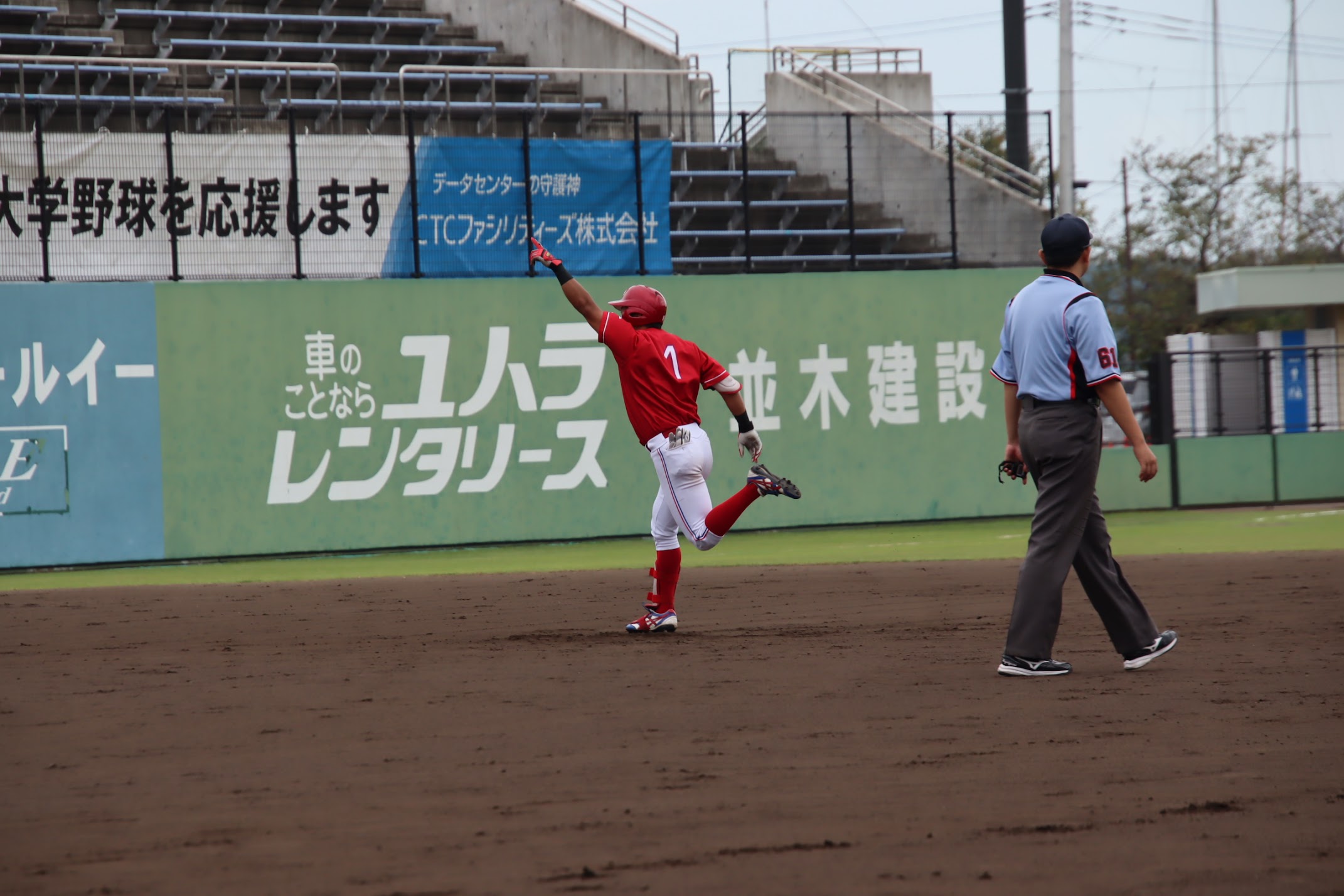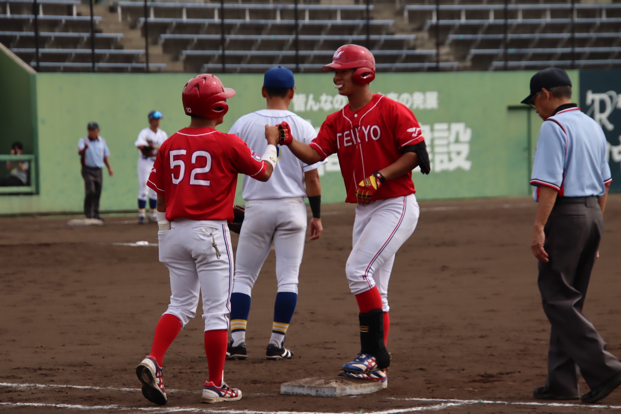 初回、山田(3年:滋賀学園)が相手のエラーを誘い、先制する。2回、3回、4回と追加点を重ね、試合を優位に進める。7回には、彦坂(4年:享栄)のホームランなどで追加点をあげる。投げては、先発の宮田(4年:和歌山商業)が粘りの投球で9回完投し、勝利した。