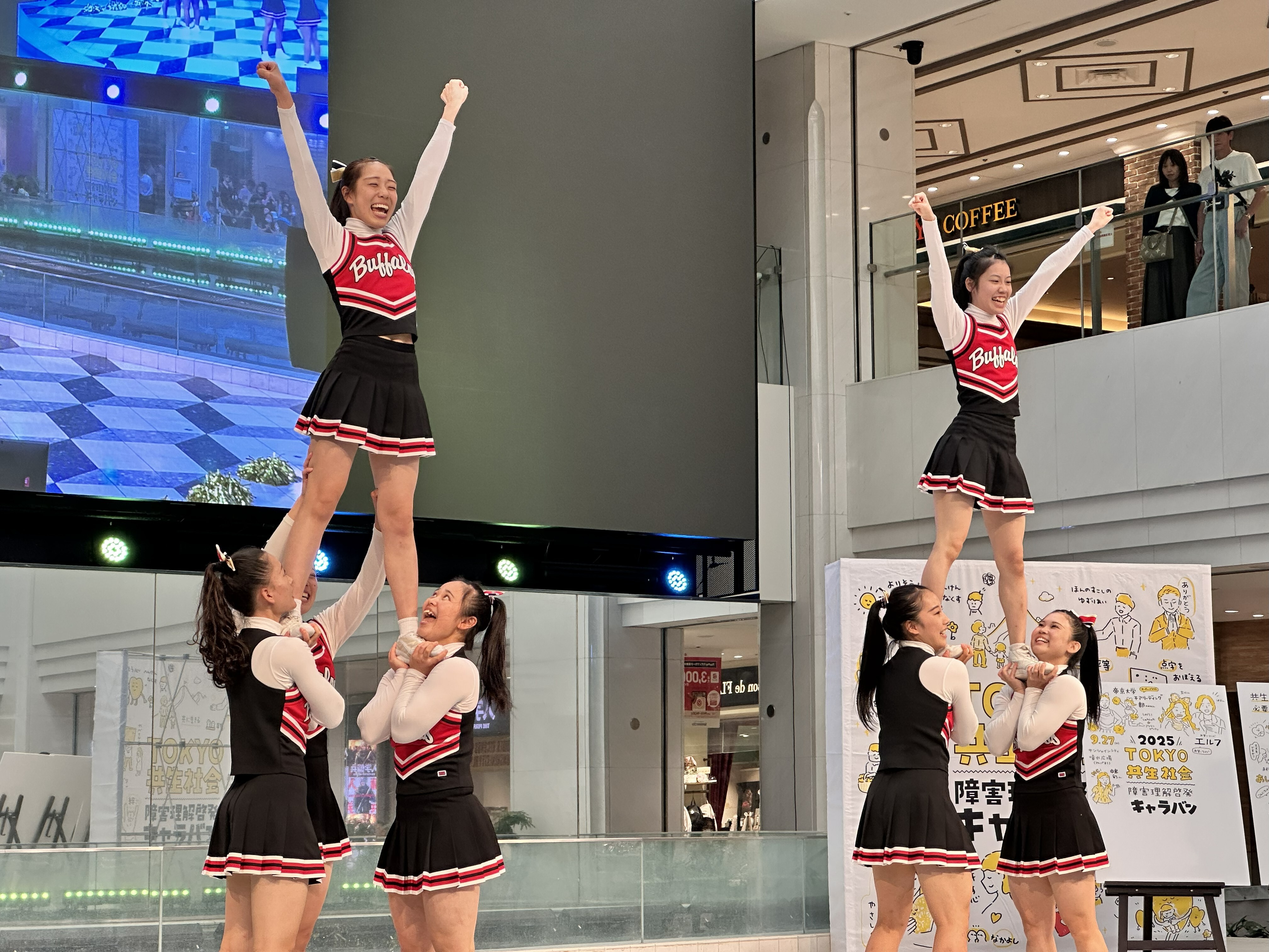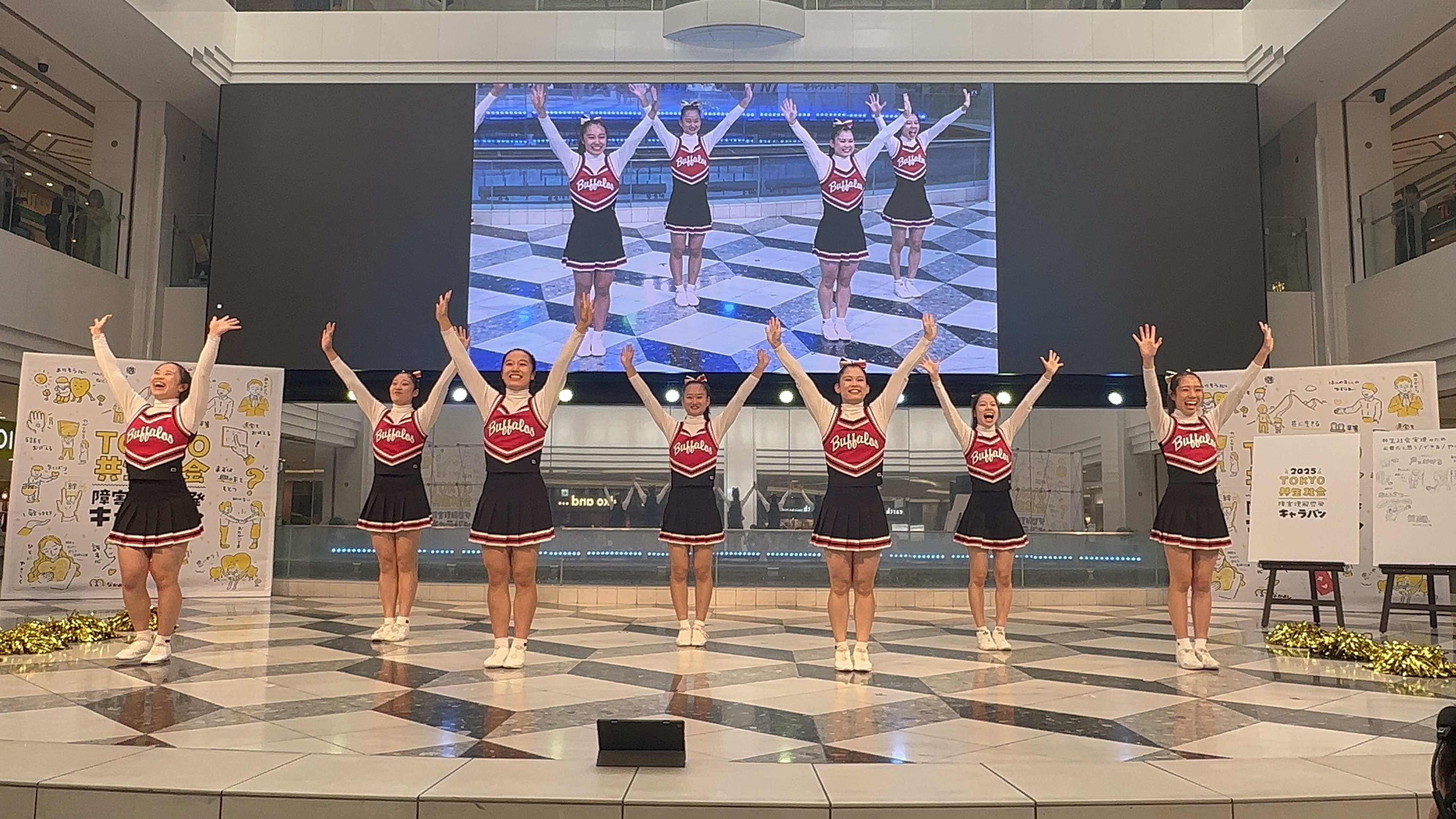 2025年9月27日(土)、池袋サンシャインシティ(東京都豊島区)において東京都が主催する「2025TOKYO共生社会障害理解啓発キャラバン」に帝京大学チアリーディング部BUFFALOSが出演しました。