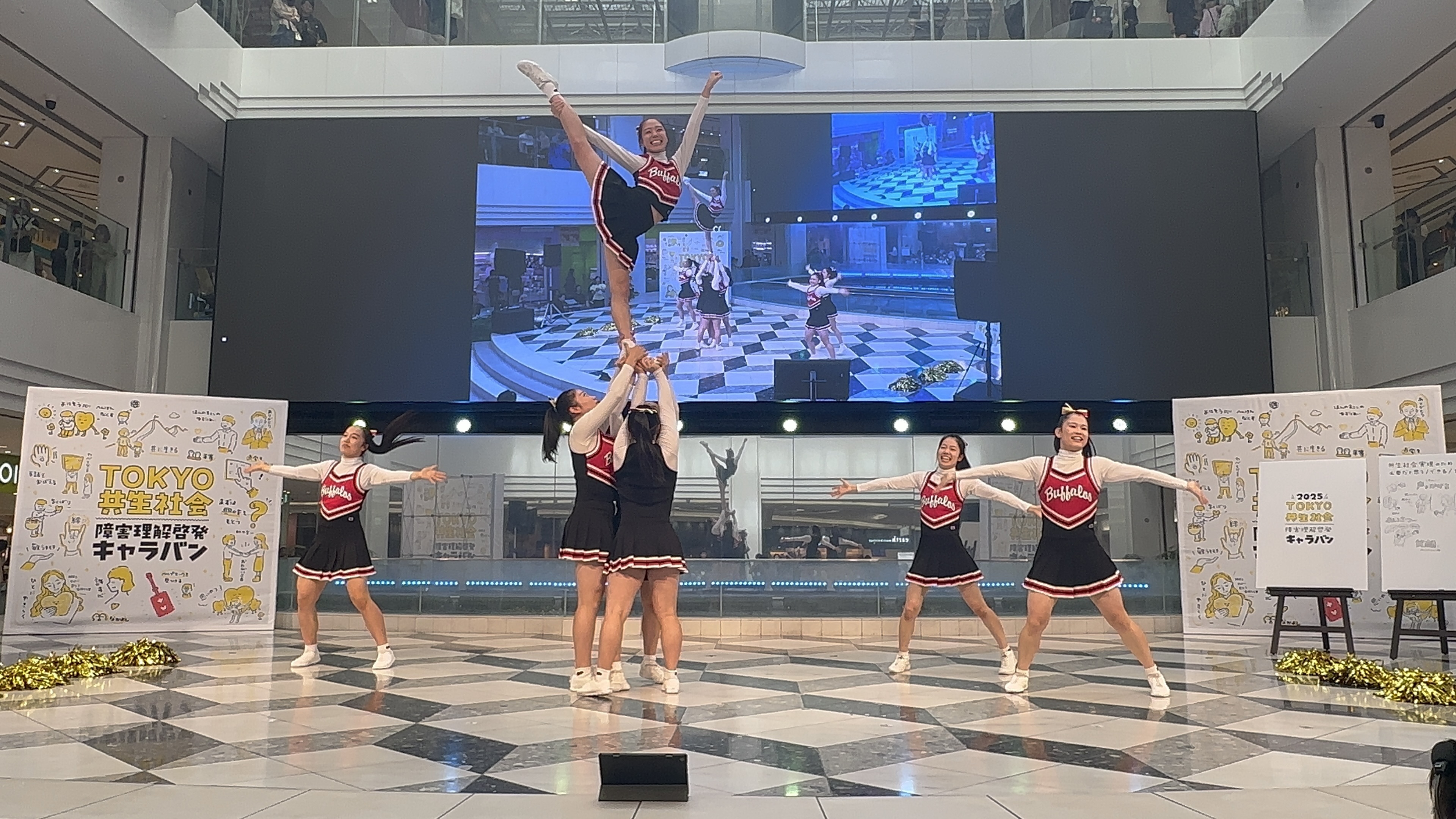 2025年9月27日(土)、池袋サンシャインシティ(東京都豊島区)において東京都が主催する「2025TOKYO共生社会障害理解啓発キャラバン」に帝京大学チアリーディング部BUFFALOSが出演しました。