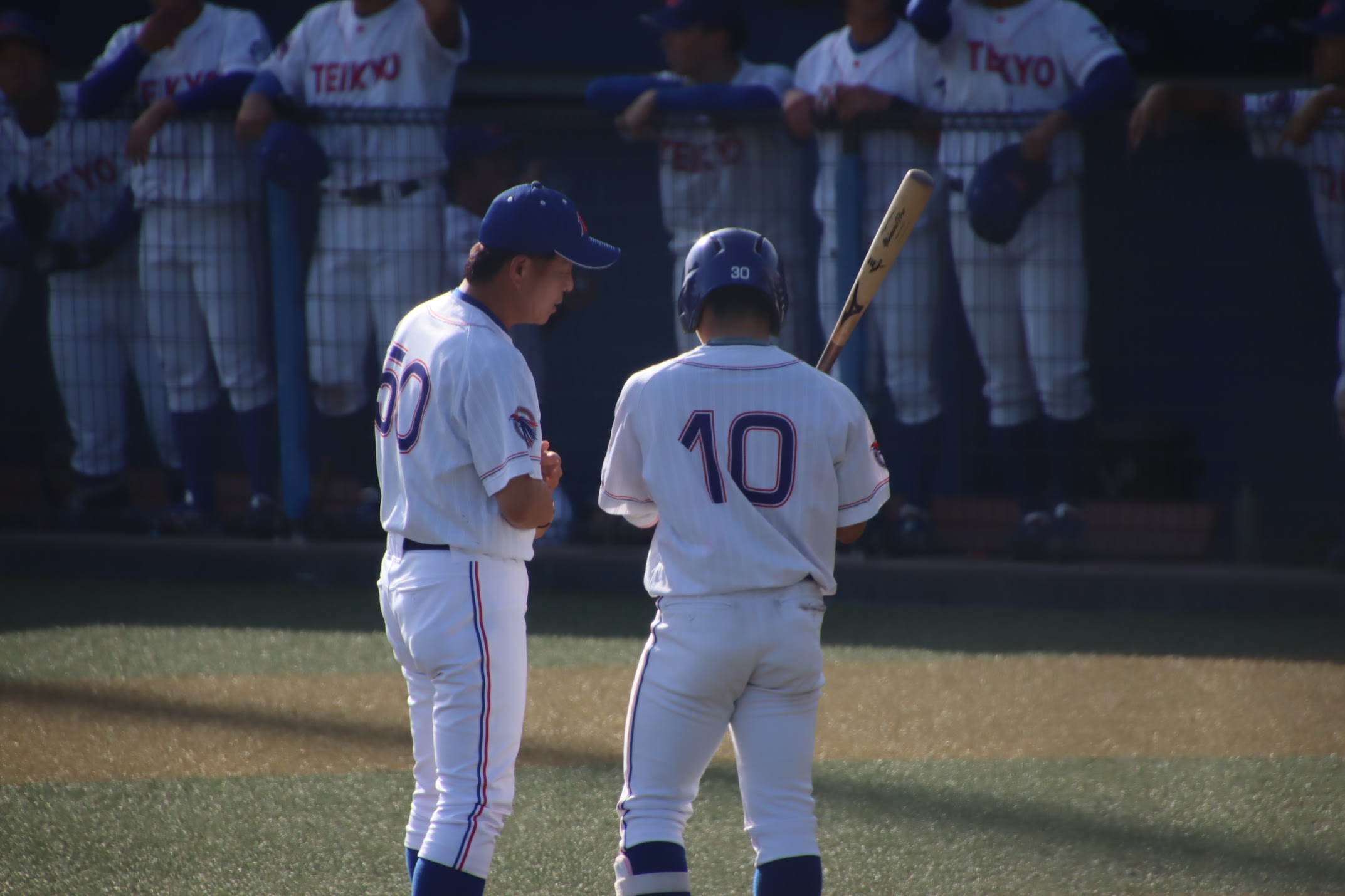 先発の宮田(4年:和歌山商業)が初回に先制を許すも、その裏に1番の中山(2年:宇都宮工業)がスリーベースヒットでチャンスメイクすると、3番の彦坂(4年:享栄)が犠牲フライを放ち、すぐさま同点に追いつく。その後は、投手戦が続き、7回にバッテリーミスで勝ち越しを許す。8回にも追加点を許し、敗戦した。