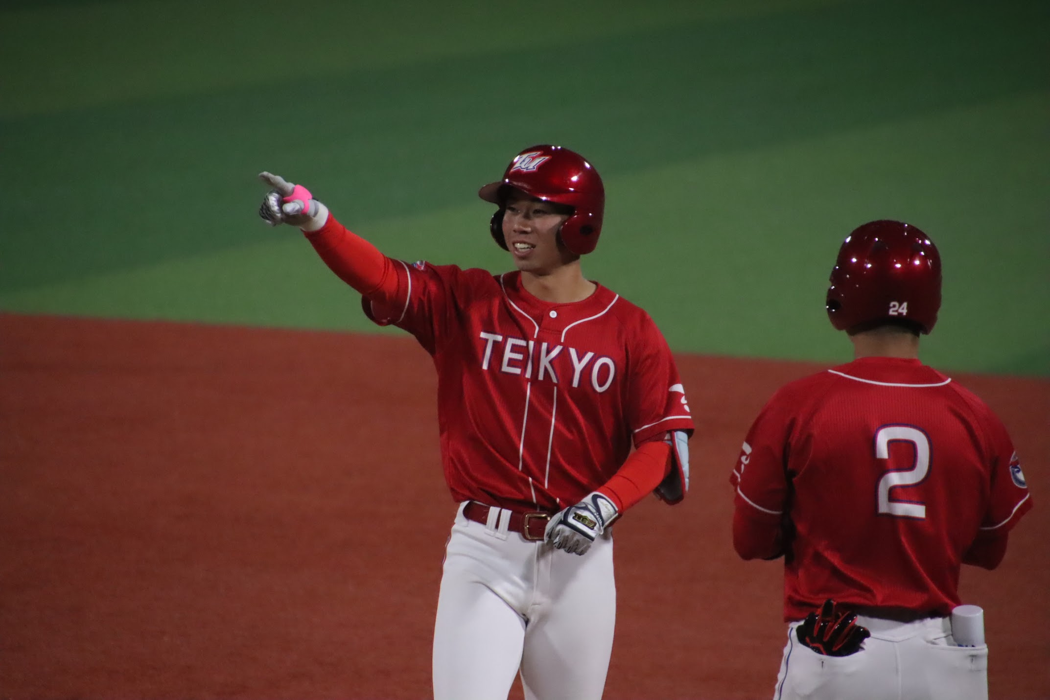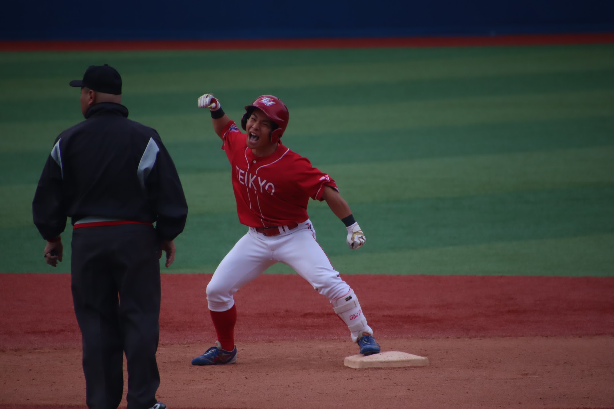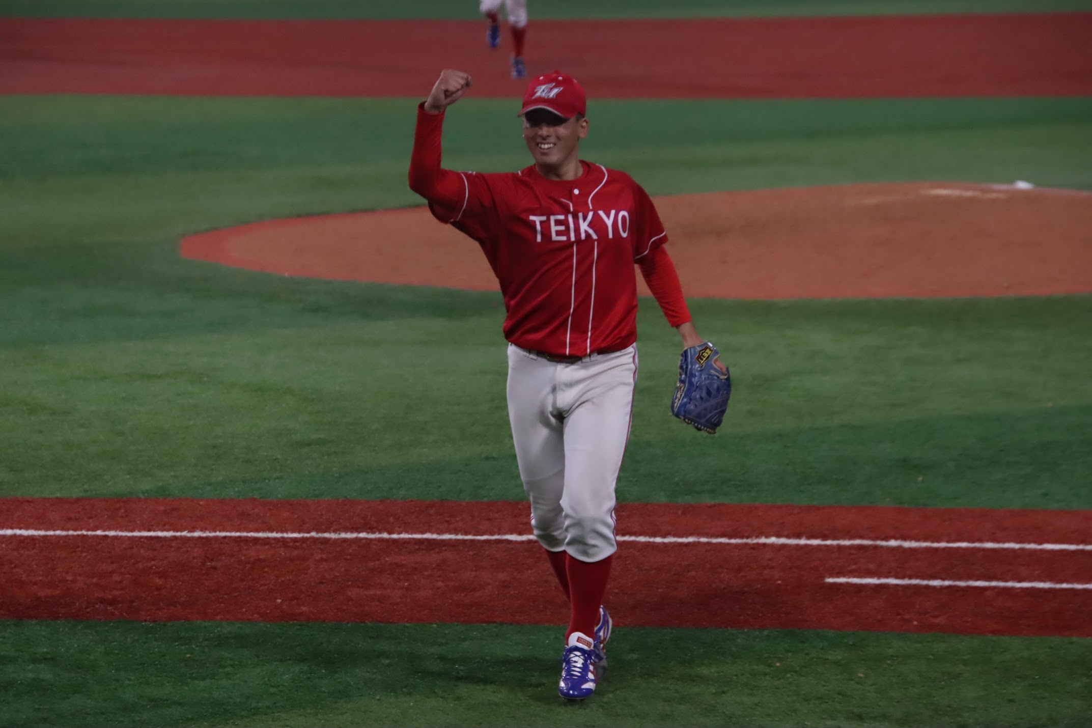 初回、先発の宮田(4年:和歌山商業)が自身のエラーなども絡み、4失点し降板する。代わった伊藤(3年:八王子北)が4回まで無失点に抑える好リリーフをする。打線は、2回に牧原(1年:日本大学藤沢)、5回に彦坂(4年:享栄)のホームランで同点に追いつく。その裏に勝ち越しを許すも、6回に宮城(4年:山口県桜ケ丘)のタイムリーですぐさま同点に追いつく。5回以降、蓮(2年:帝京第三)、近藤(1年:大宮東)、久野(4年:岡山学芸館)と無失点リレーを続ける。9回に池田(4年:宇部鴻城)の走者一掃のタイムリーで勝ち越しに成功する。その裏を3人で抑え、創部史上初となる関東地区大学野球選手権大会での勝利を掴んだ。