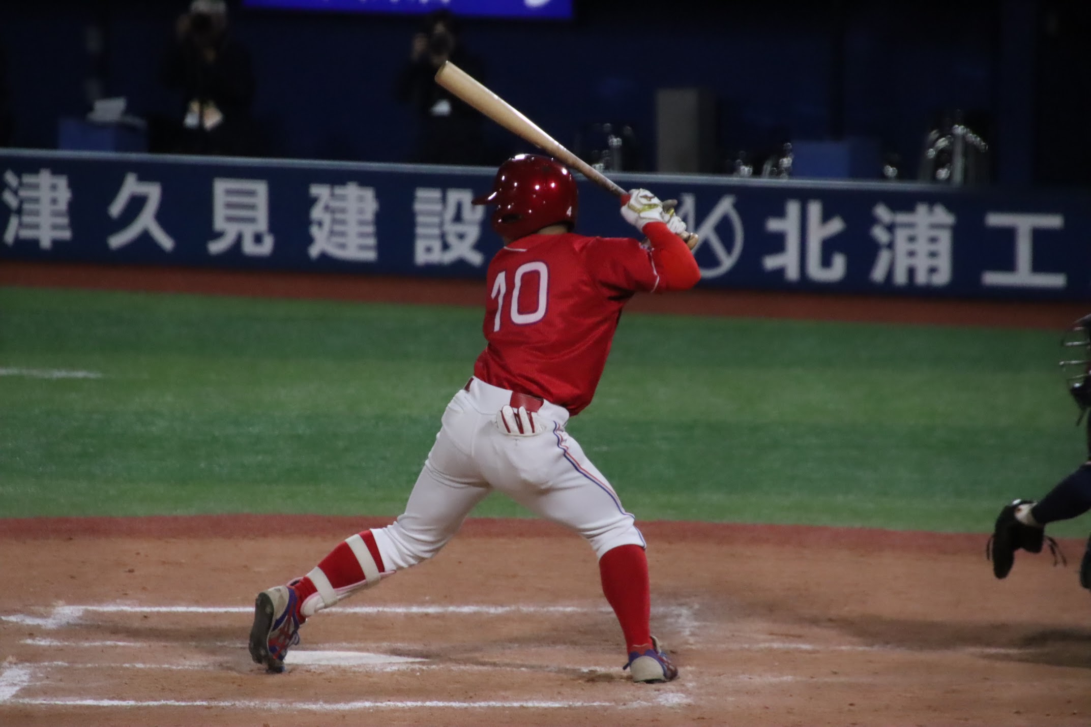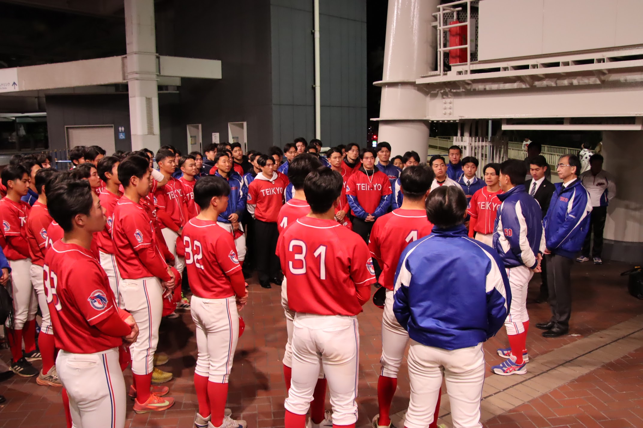 先発の沖田(1年:岡山学芸館)が2回まで無失点で抑えるが3回に先制を許し、4回にも1点を与える。6回から代わった伊藤(3年:八王子北)も2点を与えるも㓛刀(4年:宇都宮工業)が満塁のピンチを抑える。打線は、チャンスを作るも厳しい展開が続く。7回に味方のエラーも絡み、9点を失う。9回に池田(4年:宇部鴻城)、牧原(1年:日本大学藤沢)とヒットでつなぎ、主将の宮城(4年:山口県桜ケ丘)もヒットを放つが、後続が倒れ、敗戦した。