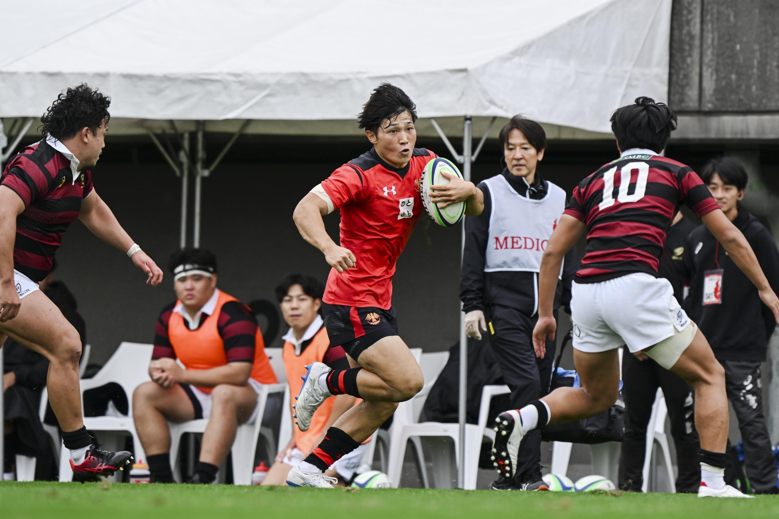 不安だった部分というのは、秩父宮で早稲田大学さんと戦うという大舞台であること、筑波大学さんに敗れた直後の試合であること、さらには(上田)倭士さんがケガをして僕がCTBに入ることになったので、倭士さんの代わりとしても恥ずかしくないプレーをしなければいけないと思ったことなどがありました。「倭士さんがいないから」などと言われないようにしなければというプレッシャーも感じていました。