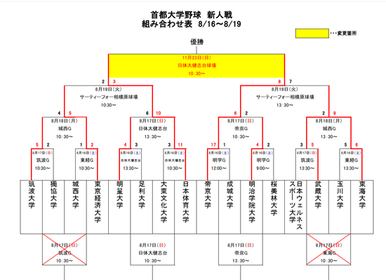 日程:11月23日(日) 日本体育大学健志台野球場 10:30PB