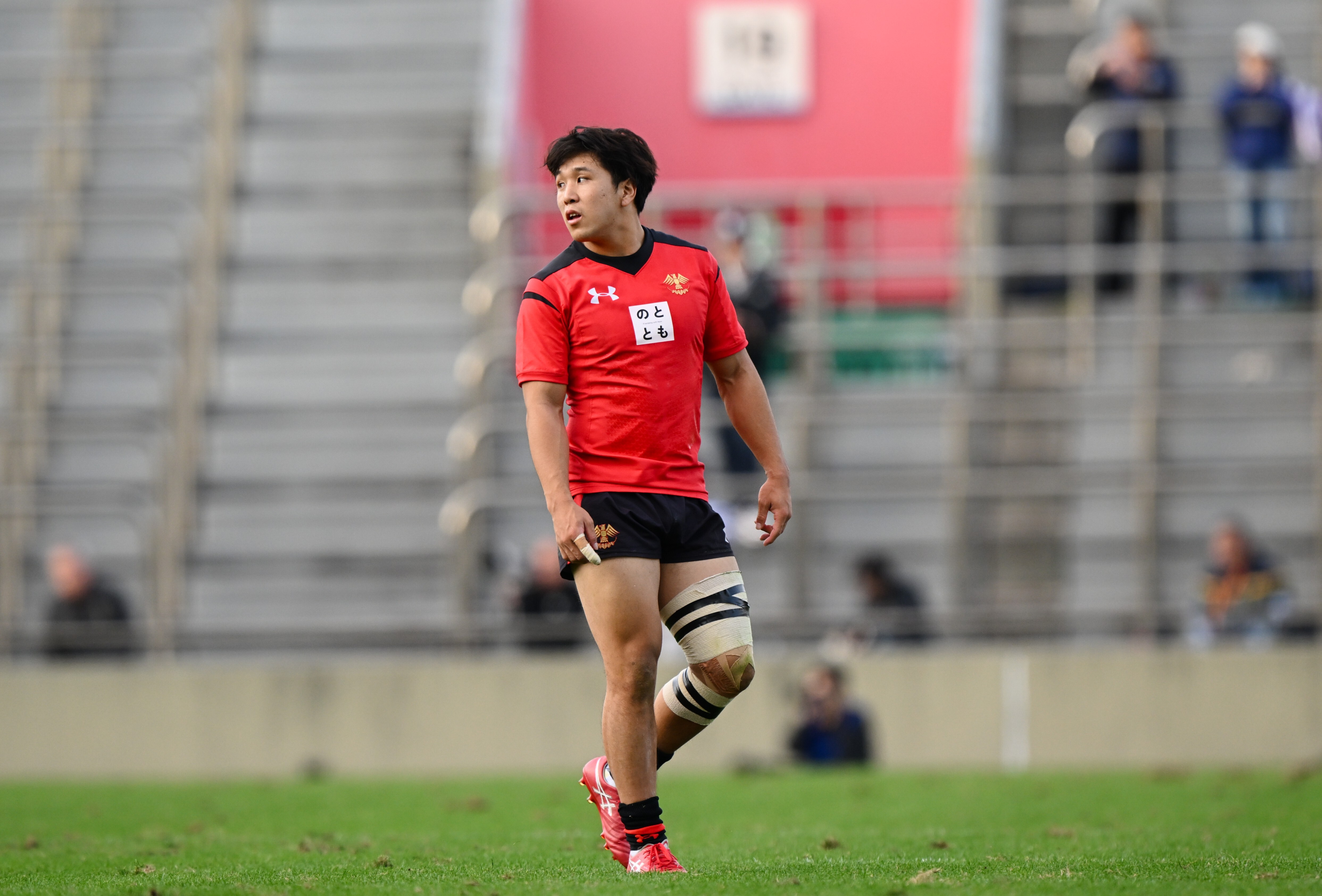 両者がっぷり四つの展開から得点が動いたのは21分。帝京が攻め込み、相手の反則が重なる。ボールを地面に置いてのタップキックから、No.8ダウナカマカマが前進。ラックから、SH武智-HO髙矢と渡り、一度止められるも再度前進して髙矢がトライ(7-0)。