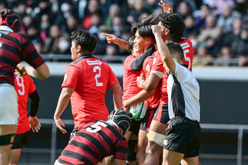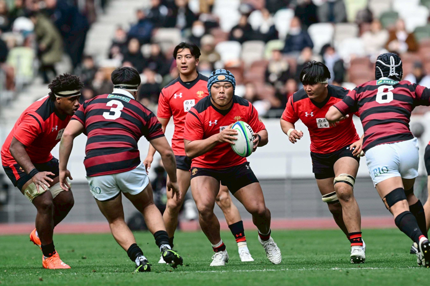 大学選手権準決勝。相手は昨年度の決勝戦で対戦した早稲田大学。開始直後、ペナルティの判定からピンチとなる。5分、ラインアウトから走られ、抜け出されて、トライを奪われてしまう(0-7)。しかし、ここから帝京が反撃を開始。10分、ラインアウトから連続攻撃。ラックから、SH武智-SO本橋-CTB上田(倭士)と渡り、上田が抜け出し、HO梶川へとパス。梶川がそのまま走り切ってトライを返す(7-7)。その後、FL呉山、LOフィシプナ、WTB生田の前進でチャンスを作るも、取り切れない。さらに、ターンオーバーでチャンスとなるが、ここも取り切れない。得点したのは16分。キックカウンターからチャンスを掴む。相手のキックをキャッチしたFB吉田(琉)がWTB日隈へパス。日隈が自陣からランで前進。相手ディフェンスを次々とかわし、そのまま走り切ってトライ(14-7)。試合の流れを掴んだかに見えた帝京だが、このあたりから攻撃時に相手にボールを渡す結果となるキックも増え、チャンを活かせない。さらに、ペナルティの判定も増えてくる。20分、ペナルティの判定からPGを決められ、25分にもペナルティの判定からラインアウト・モールを押し込まれて失点してしまう(14-15)。30分にはノックフォワードしたボールをキックパスでつながれ、トライを許す(14-20)。その後のペナルティの判定が続くピンチでは、堅い守りを見せ、相手の前進を許さないが、38分、ドロップゴールを決められ、14-23で前半を折り返した。後半、なんとか先に得点したい帝京だが、試合はお互いに守り合う展開となる。帝京はピンチでもしっかりと守って失点を防ぐが、チャンスの場面でミスやペナルティの判定をもらい、攻め切れない。さらにペナルティの判定が続き、17分、ラインアウトからモールを押し込まれ、トライを奪われてしまう(14-28)。帝京のペナルティ判定はさらに続き、23分、ペナルティゴールを決められ、14-31と点差を広げられてしまう。それでも帝京は諦めることなく、やるべきことを遂行していく。ピンチの場面も、HO髙矢のスティールで防ぐ。31分、ラインアウトからのボールがやや乱れるも、なんとかキープし、つなぐ。PR森山がタックルを受けるも、倒れずに粘り、FL甲斐がボールをもらって前進。ディフェンスをかわしながら、そのまま走り切ってトライを奪う(21-31)。ここから帝京はさらにチャンスを作って攻めるが、ペナルティの判定やミスもあり、取り切れない。さらにチャンスがあるが、ここも取り切れずにノーサイド。帝京は21-31で敗れ、今シーズンの戦いを終えることとなった。