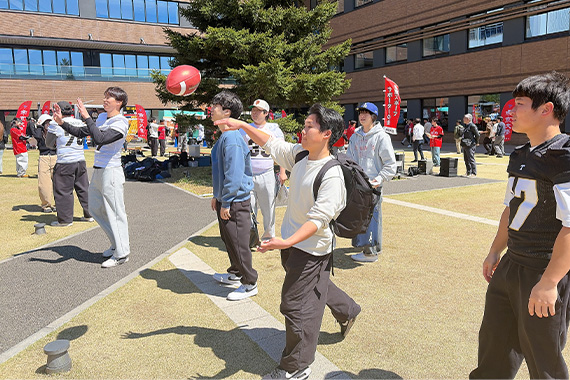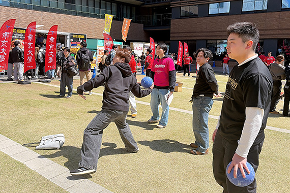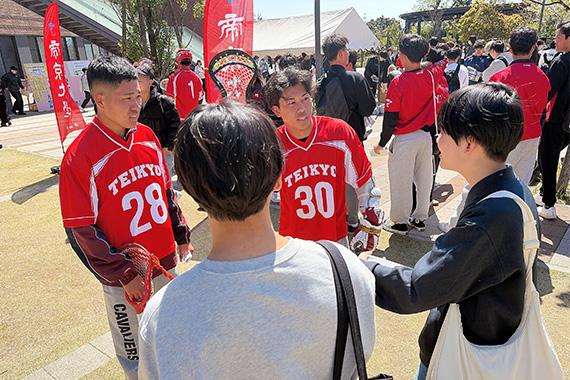 当日は、帝京大学アメリカンフットボール部、ラクロス部、ハンドボール部が部員募集を行い、硬式野球部は週末に行われる公式戦への応援参加を呼びかけました。翌日には、女性アスリート応援企画の一環として、バスケットボール部(女子)、女子サッカー部、ハンドボール部(女子)、ラクロス部(女子)が参加し、同様に体験イベントを実施しました。参加学生は、楽しみながら複数のクラブと交流できる機会となりました。