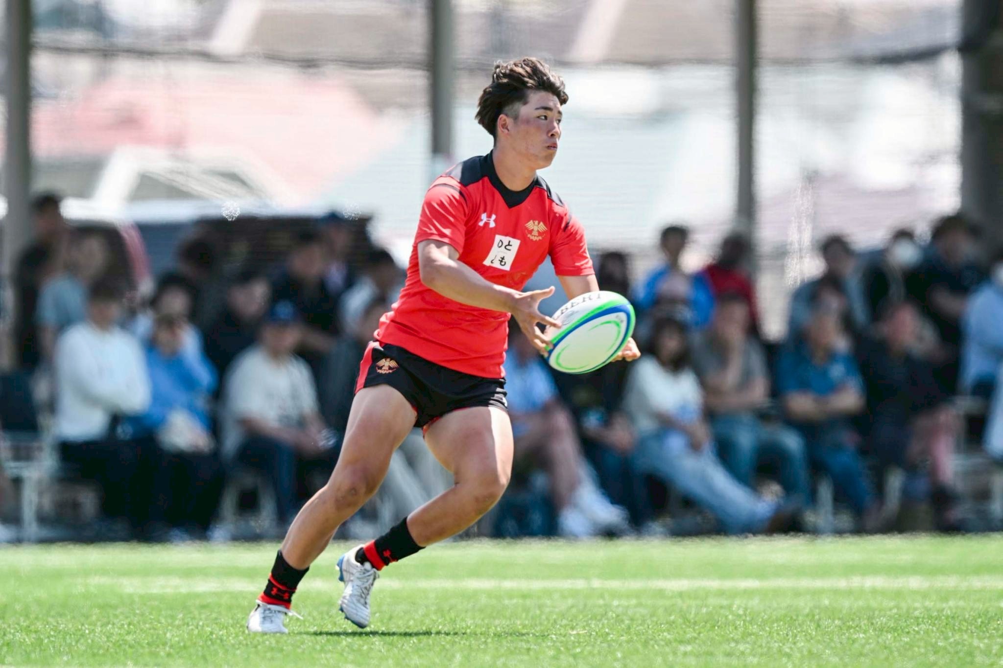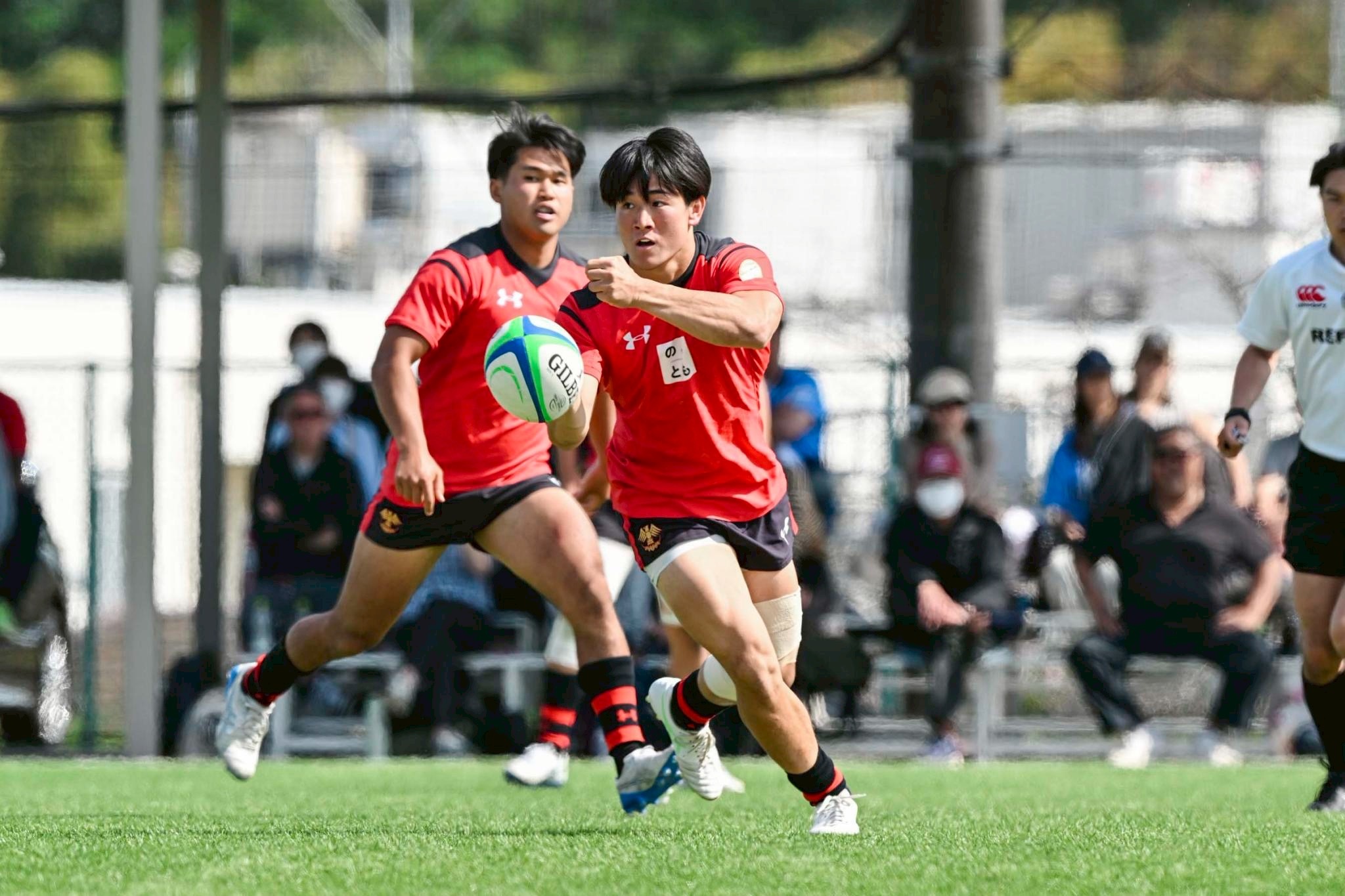 38分には、キックカウンターから連続攻撃。PR佐藤(蒼)が前進。ラックから、SH飯沼-CTB神田-PR上野-SO髙本-FL甲斐と渡り、甲斐が走り切ってトライ。91-0で帝京が春季交流大会第一戦に勝利した。