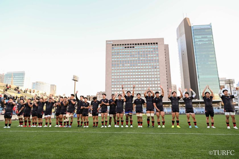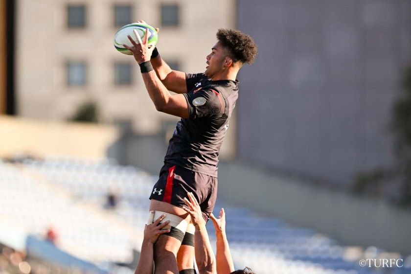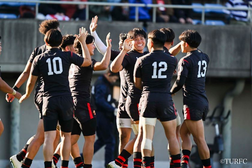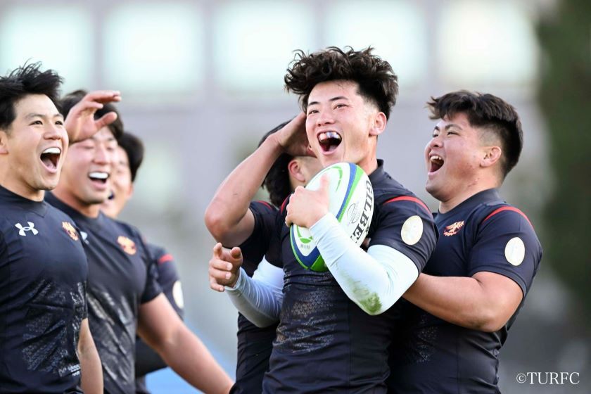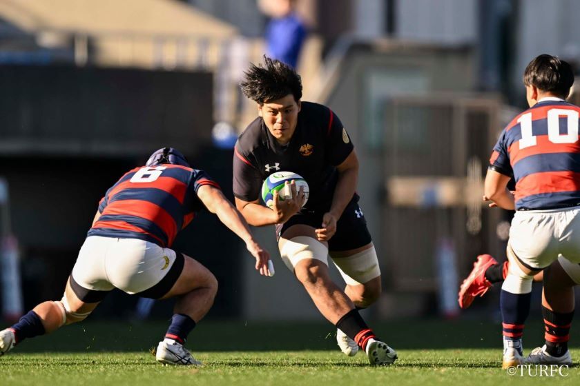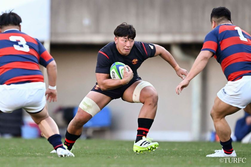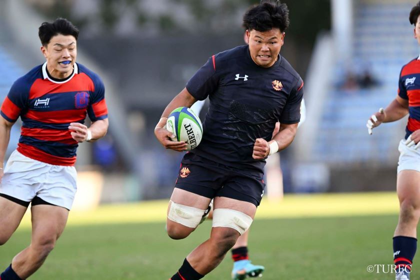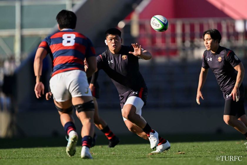 7分、ラインアウトからFL奥井-HO江良と渡り、江良が抜け出してトライ(38-3)。直後の9分には、キックオフから連続攻撃。WTB高本(とむ)、WTB小村、PR津村らが前進。ラックからSH李-CTB戒田-FB山口(泰)-WTB高本(とむ)と渡り、高本が走り切ってトライ(45-3)。さらに13分、ラインアウトから連続攻撃、WTB高本(とむ)がディフェンスをかわして大きく前進し、FL奥井へとパス。奥井が抜け出してトライ(52-3)。