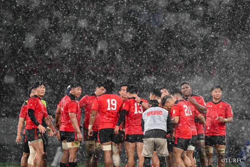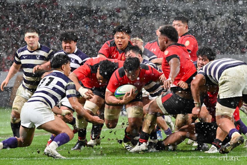 大学選手権決勝は帝京が34-15で勝利し、3年連続12度目の大学日本一となりました。落雷の可能性による約55分間の中断、さらには雪の降る中での試合という過酷な条件でも、帝京は自分たちのプレーをし続け、栄冠を勝ち取ることができました。