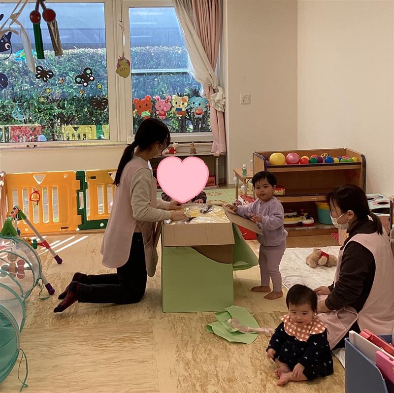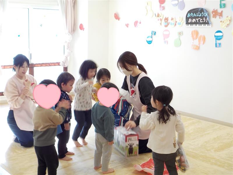 もらったプレゼントをさっそくあけて、 大喜びで遊んでいるこどもたちです!