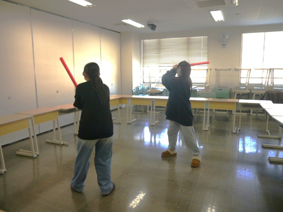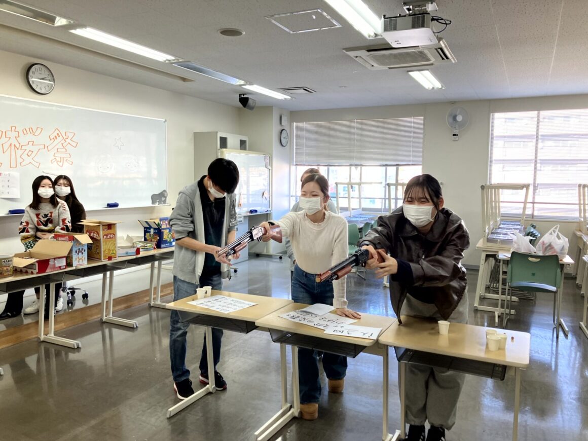 ベッドメイキングの速さを競う「ベッドメイキング・タイム アタック」や、”鬼滅の刃” で鬼殺隊が訓練していた目隠し状態で気配を察知し相手を斬る「気配切り」、そのほか「椅子取りゲーム」、「なんでもバスケット」、「射的」、「イントロ当てクイズ」など様々なゲームが行われ、1~3年生が親睦を図りながら楽しみました。
