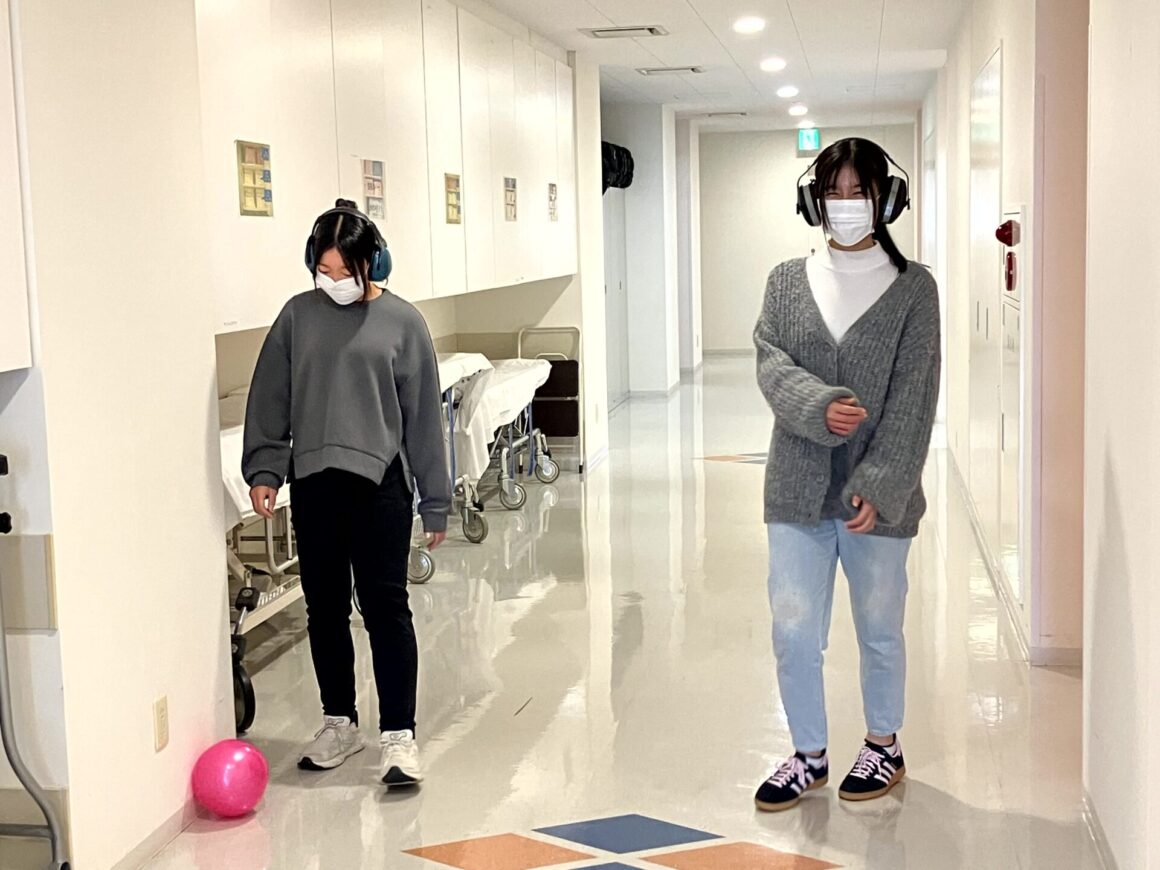「視野を狭くする特殊メガネ」&「軍手2枚重ね(手指のこわばり)」で高齢者疑似体験