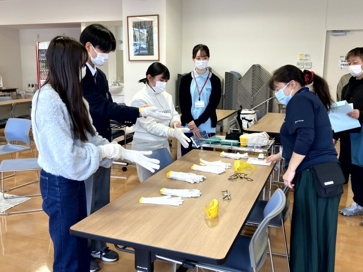 今回は、入試直前ということで、在校生との交流会では、参加者から、受験の心構えや入試に関する質問が多くありました。そのほか、高齢者疑似体験(視覚・聴力等を低下させた体験)を行いました。 参加してくれた高校生の皆さん、これを機に看護師を目指していただければ幸いです。